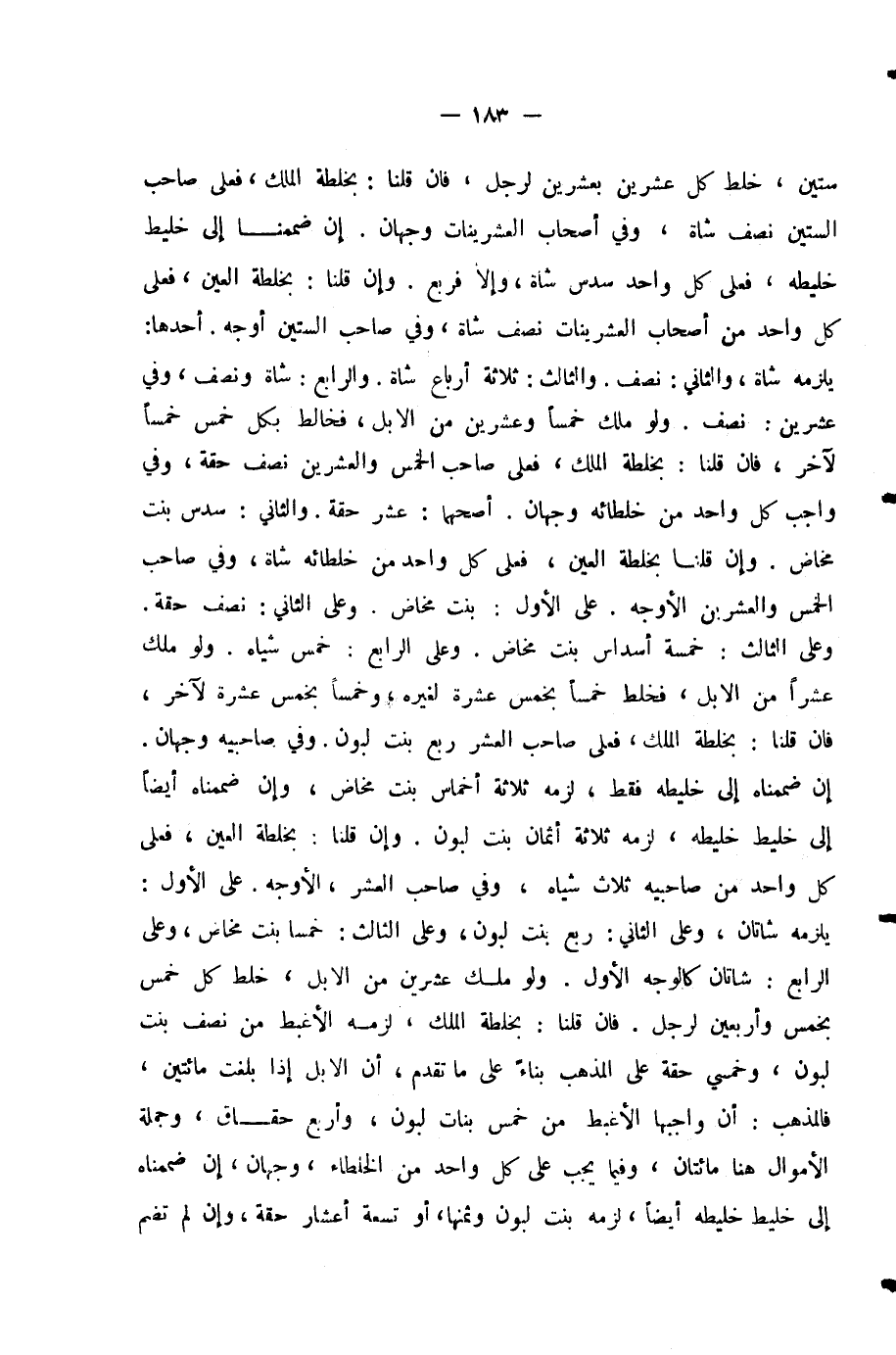 سِتِّينَ خَلَطَ كُلَّ عِشْرِينَ بِعِشْرِينَ لِرَجُلٍ، فَإِنْ قُلْنَا بِخُلْطَةِ الْمِلْكِ فَعَلَى صَاحِبِ السِّتِّينَ نِصْفُ شَاةٍ، وَفِي أَصْحَابِ الْعِشْرِينَاتِ وَجْهَانِ. إِنْ ضَمَمْنَا إِلَى خَلِيطٍ خَلِيطَهُ، فَعَلَى كُلِّ وَاحِدٍ سُدُسُ شَاةٍ، وَإِلَّا فَرُبُعٌ. وَإِنْ قُلْنَا بِخُلْطَةِ الْعَيْنِ فَعَلَى كُلِّ وَاحِدٍ مِنْ أَصْحَابِ الْعِشْرِينَاتِ نِصْفُ شَاةٍ، وَفِي صَاحِبِ السِّتِّينَ أَوْجُهٌ، أَحَدُهَا: يَلْزَمُهُ شَاةٌ، وَالثَّانِي: نَصِفٌ. وَالثَّالِثُ: ثَلَاثَةُ أَرْبَاعِ شَاةٍ. وَالرَّابِعُ: شَاةٌ وَنِصْفٌ، وَفِي عِشْرِينَ: نَصِفٌ. وَلَوْ مَلَكَ خَمْسًا وَعِشْرِينَ مِنَ الْإِبِلِ، فَخَالَطَ بِكُلِّ خَمْسٍ خَمْسًا لِآخَرَ، فَإِنْ قُلْنَا بِخُلْطَةِ الْمِلْكِ، فَعَلَى صَاحِبِ الْخَمْسِ وَالْعِشْرِينَ نِصْفُ حِقَّةٍ، وَفِي وَاجِبِ كُلِّ وَاحِدٍ مِنْ خُلَطَائِهِ وَجْهَانِ، أَصَحُّهُمَا: عُشْرُ حِقَّةٍ. وَالثَّانِي: سُدُسُ بِنْتِ مَخَاضٍ. وَإِنْ قُلْنَا بِخُلْطَةِ الْعَيْنِ، فَعَلَى كُلِّ وَاحِدٍ مِنْ خُلَطَائِهِ شَابٌّ، وَفِي صَاحِبِ الْخَمْسُ وَالْعِشْرِينَ الْأَوْجُهُ. عَلَى الْأَوَّلِ: بِنْتُ مَخَاضٍ. وَعَلَى الثَّانِي: نِصْفُ حِقَّةٍ. وَعَلَى الثَّالِثِ: خَمْسَةُ أَسْدَاسِ بِنْتِ مَخَاضٍ. وَعَلَى الرَّابِعِ: خَمْسُ شِيَاهٍ. وَلَوْ مَلَكَ عَشْرًا مِنَ الْإِبِلِ، فَخَلَطَ خَمْسًا بِخَمْسَ عَشْرَةَ لِغَيْرِهِ، وَخَمْسًا بِخَمْسَ عَشْرَةَ لِآخَرَ، فَإِنْ قُلْنَا بِخُلْطَةِ الْمِلْكِ، فَعَلَى صَاحِبِ الْعَشْرِ رُبُعُ بِنْتِ لَبُونٍ. وَفِي صَاحِبَيْهِ وَجْهَانِ، إِنْ ضَمَمْنَاهُ إِلَى خَلِيطِهِ فَقَطْ لَزِمَهُ ثَلَاثَةُ أَخْمَاسِ بِنْتِ مَخَاضٍ، وَإِنْ ضَمَمْنَاهُ أَيْضًا إِلَى خَلِيطِ خَلِيطِهِ لَزِمَهُ ثَلَاثَةُ أَثْمَانِ بِنْتِ لَبُونٍ. وَإِنْ قُلْنَا بِخَلْطَةِ الْعَيْنِ، فَعَلَى كُلِّ وَاحِدٍ مِنْ صَاحِبَيْهِ ثَلَاثُ شِيَاهٍ، وَفِي صَاحِبِ الْعَشْرِ، الْأَوْجُهُ، عَلَى الْأَوَّلِ: يَلْزَمُهُ شَاتَانِ، وَعَلَى الثَّانِي: رُبُعُ بِنْتِ لَبُونٍ، وَعَلَى الثَّالِثِ: خُمُسَا بِنْتِ مَخَاضٍ، وَعَلَى الرَّابِعِ: شَاتَانِ كَالْوَجْهِ الْأَوَّلِ. وَلَوْ مَلَكَ عِشْرِينَ مِنَ الْإِبِلِ، خَلَطَ كُلَّ خَمْسَةٍ بِخَمْسٍ وَأَرْبَعِينَ لِرَجُلٍ، فَإِنْ قُلْنَا بِخُلْطَةِ الْمِلْكِ لَزِمَهُ الْأَغْبَطُ مِنْ نِصْفِ بِنْتِ لَبُونٍ، وَخُمُسَيْ حِقَّةٍ عَلَى الْمَذْهَبِ بِنَاءً عَلَى مَا تَقَدَّمَ أَنَّ الْإِبِلَ إِذَا بَلَغَتْ مِائَتَيْنِ فَالْمَذْهَبُ أَنَّ وَاجِبَهَا الْأَغْبَطُ مِنْ خَمْسِ بَنَاتِ لَبُونٍ وَأَرْبَعِ حِقَاقٍ، وَجُمْلَةُ الْأَمْوَالِ هُنَا مِائَتَانِ، وَفِيمَا يَجِبُ عَلَى كُلِّ وَاحِدٍ مِنَ الْخُلَطَاءِ، وَجْهَانِ، إِنْ ضَمَمْنَاهُ إِلَى خَلِيطِ خَلِيطِهِ أَيْضًا، لَزِمَهُ بِنْتُ لَبُونٍ وَثَمَنُهَا، أَوْ تِسْعَةُ أَعْشَارِ حِقَّةٍ، وَإِنْ لَمْ تُضَمَّ