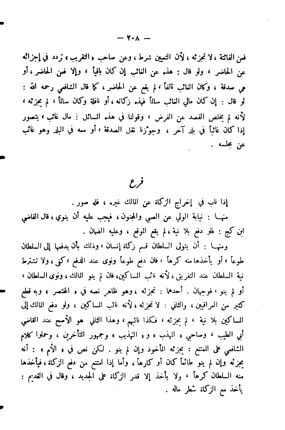 وَمِنْهَا: أَنْ يَتَوَلَّى السُّلْطَانُ قَسْمَ زَكَاةِ إِنْسَانٍ، وَذَلِكَ بِأَنْ يَدْفَعَهَا إِلَى السُّلْطَانِ طَوْعًا، أَوْ يَأْخُذَهَا مِنْهُ كَرْهًا، فَإِنْ دَفَعَ طَوْعًا وَنَوَى عِنْدَ الدَّفْعِ، كَفَى، وَلَا تُشْتَرَطُ نِيَّةُ السُّلْطَانِ عِنْدَ التَّفْرِيقِ؛ لِأَنَّهُ نَائِبُ الْمَسَاكِينِ، فَإِنْ لَمْ يَنْوِ الْمَالِكُ، وَنَوَى السُّلْطَانُ أَوْ لَمْ يَنْوِ، فَوَجْهَانِ، أَحَدُهُمَا: تُجْزِئُهُ، وَهُوَ ظَاهِرُ نَصِّهِ فِي الْمُخْتَصَرِ وَبِهِ قَطَعَ كَثِيرٌ مِنَ الْعِرَاقِيِّينَ، وَالثَّانِي: لَا تُجْزِئُهُ؛ لِأَنَّهُ نَائِبُ الْمَسَاكِينِ، وَلَوْ دَفَعَ الْمَالِكُ إِلَى الْمَسَاكِينِ بِلَا نِيَّةٍ، لَمْ يُجْزِئْهُ، فَكَذَا نَائِبُهُمْ، وَهَذَا الثَّانِي هُوَ الْأَصَحُّ عِنْدَ الْقَاضِي أَبِي الطَّيِّبِ، وَصَاحِبَيِ الْمُهَذَّبِ وَالتَّهْذِيبِ وَجُمْهُورِ الْمُتَأَخِّرِينَ، وَحَمَلُوا كَلَامَ الشَّافِعِيِّ عَلَى الْمُمْتَنِعِ: يُجْزِئُهُ الْمَأْخُوذُ وَإِنْ لَمْ يَنْوِ. لَكِنْ نَصَّ فِي الْأُمِّ أَنَّهُ يُجْزِئُهُ وَإِنْ لَمْ يَنْوِ طَائِعًا كَانَ أَوْ كَارِهًا، وَأَمَّا إِذَا امْتَنَعَ مِنْ دَفْعَ الزَّكَاةَ، فَيَأْخُذُهَا مِنْهُ السُّلْطَانُ كَرْهًا، وَلَا يَأْخُذُ إِلَّا قَدْرَ الزَّكَاةِ عَلَى الْجَدِيدِ، وَقَالَ فِي الْقَدِيمِ: يَأْخُذُ مَعَ الزَّكَاةِ شَطْرَ مَالِهِ.