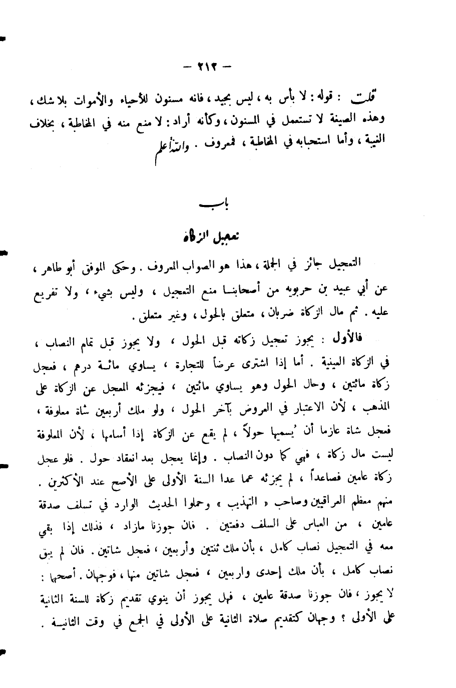 التَّعْجِيلُ جَائِزٌ فِي الْجُمْلَةِ، هَذَا هُوَ الصَّوَابُ الْمَعْرُوفُ. وَحَكَى الْمُوَفَّقُ أَبُو طَاهِرٍ، عَنْ أَبِي عُبَيْدِ بْنِ حَرْبَوَيْهِ مِنْ أَصْحَابِنَا مَنْعَ التَّعْجِيلِ، وَلَيْسَ بِشَيْءٍ، وَلَا تَفْرِيعَ عَلَيْهِ. ثُمَّ مَالُ الزَّكَاةِ ضَرْبَانِ: مُتَعَلِّقٌ بِالْحَوْلِ، وَغَيْرُ مُتَعَلِّقٍ.