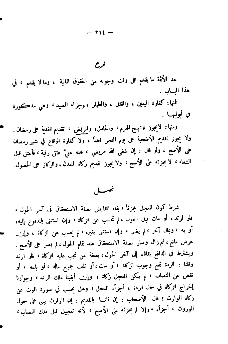 عَدَّ الْأَئِمَّةُ مَا يُقَدَّمُ عَلَى وَقْتِ وُجُوبِهِ مِنَ الْحُقُوقِ الْمَالِيَّةِ وَمَا لَا يُقَدَّمُ فِي هَذَا الْبَابِ.