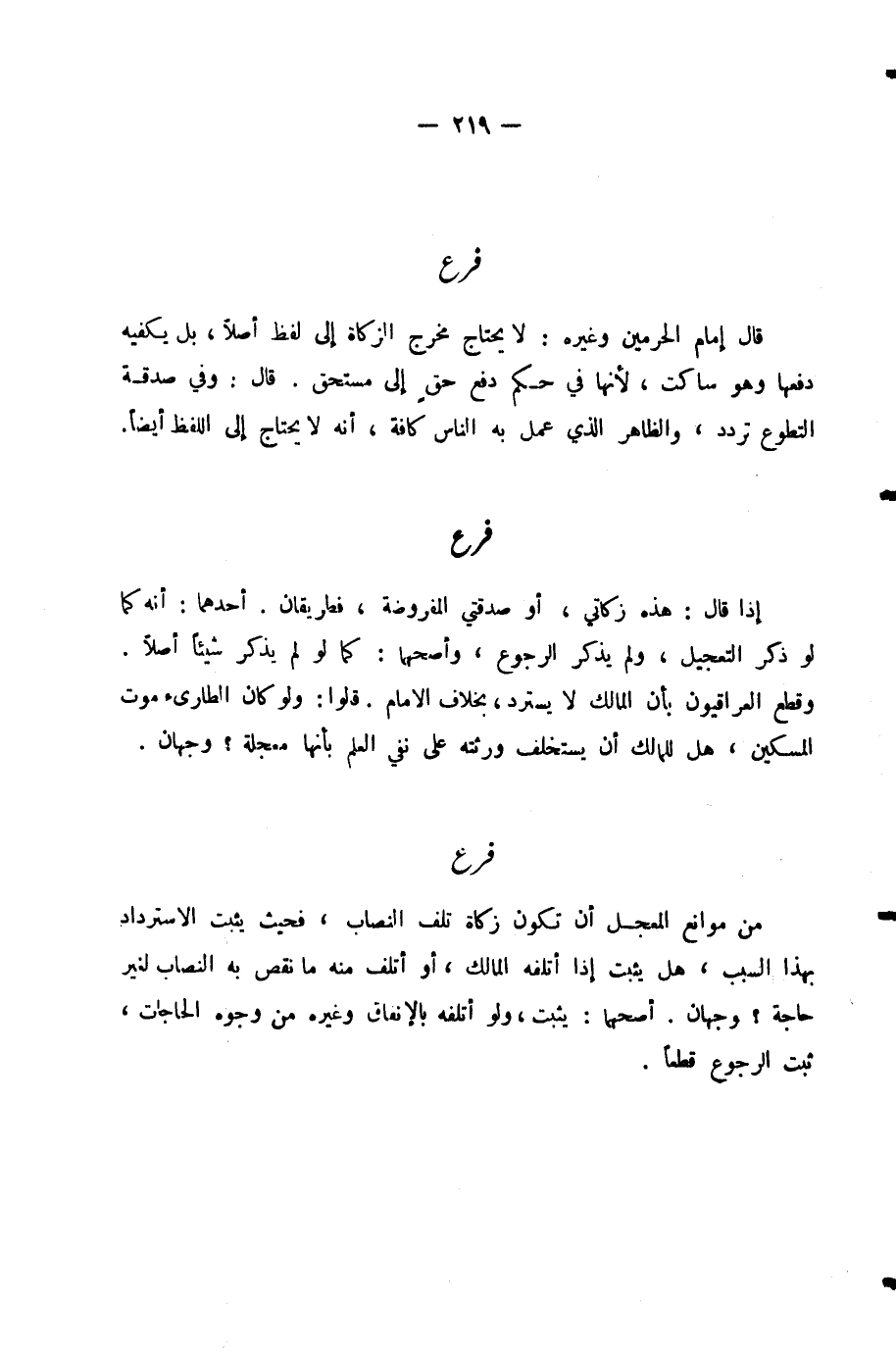قَالَ إِمَامُ الْحَرَمَيْنِ وَغَيْرُهُ: لَا يَحْتَاجُ مُخْرِجُ الزَّكَاةِ إِلَى لَفْظٍ أَصْلًا، بَلْ يَكْفِيهِ دَفْعُهَا وَهُوَ سَاكِتٌ؛ لِأَنَّهَا فِي حُكْمِ دَفْعِ حَقٍّ إِلَى مُسْتَحِقٍّ. قَالَ: وَفِي صَدَقَةِ التَّطَوُّعِ تَرَدُّدٌ، وَالظَّاهِرُ الَّذِي عَمِلَ بِهِ النَّاسُ كَافَّةً أَنَّهُ لَا يَحْتَاجُ إِلَى اللَّفْظِ أَيْضًا.
