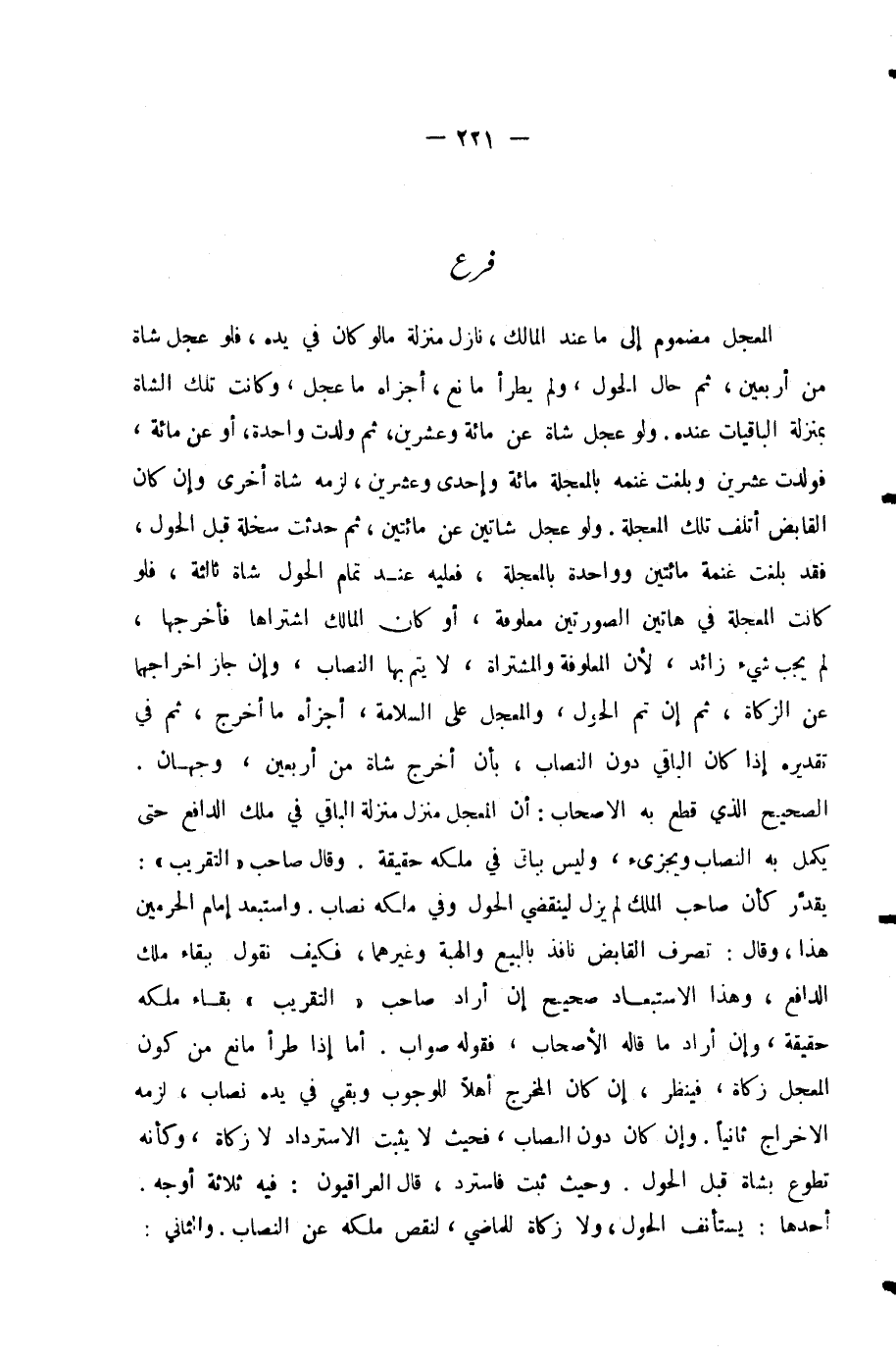 وَلَوْ عَجَّلَ شَاتَيْنِ عَنْ مِائَتَيْنِ، ثُمَّ حَدَثَتْ سَخْلَةٌ قَبْلَ الْحَوْلِ، فَقَدْ بَلَغَتْ غَنَمُهُ مِائَتَيْنِ وَوَاحِدَةً بِالْمُعَجَّلَةِ، فَعَلَيْهِ عِنْدَ تَمَامِ الْحَوْلِ شَاةٌ ثَالِثَةٌ، فَلَوْ كَانَتِ الْمُعَجَّلَةُ فِي هَاتَيْنِ الصُّورَتَيْنِ مَعْلُوفَةً، أَوْ كَانَ الْمَالِكُ اشْتَرَاهَا فَأَخْرَجَهَا - لَمْ يَجِبْ شَيْءٌ زَائِدٌ؛ لِأَنَّ الْمَعْلُوفَةَ وَالْمُشْتَرَاةَ لَا يَتِمُّ بِهَا النِّصَابُ، وَإِنْ جَازَ إِخْرَاجُهُمَا عَنِ الزَّكَاةِ، ثُمَّ إِنْ تَمَّ الْحَوْلُ، وَالْمُعَجَّلُ عَلَى السَّلَامَةِ، أَجْزَأَهُ مَا أَخْرَجَ. ثُمَّ فِي تَقْدِيرِهِ إِذَا كَانَ الْبَاقِي دُونَ النِّصَابِ بِأَنْ أَخْرَجَ شَاةً مِنْ أَرْبَعِينَ - وَجْهَانِ: الصَّحِيحُ الَّذِي قَطَعَ بِهِ الْأَصْحَابُ أَنَّ الْمُعَجَّلَ مُنَزَّلٌ مَنْزِلَةَ الْبَاقِي فِي مِلْكِ الدَّافِعِ حَتَّى يَكْمُلَ بِهِ النِّصَابُ وَيُجْزِئَ، وَلَيْسَ بِبَاقٍ فِي مِلْكِهِ حَقِيقَةً.