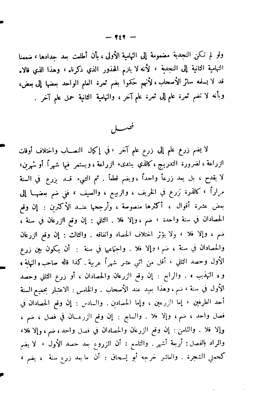 وَلَوْ لَمْ تَكُنِ النَّجْدِيَّةُ مَضْمُومَةً إِلَى التَّهَامِيَّةِ الْأُولَى بِأَنْ أَطْلَعَتْ بَعْدَ جِدَادِهَا - ضَمَمْنَا التَّهَامِيَّةَ الثَّانِيَةَ إِلَى النَّجْدِيَّةِ؛ لِأَنَّهُ لَا يَلْزَمُ الْمَحْذُورُ الَّذِي ذَكَرْنَاهُ، وَهَذَا الَّذِي قَالَاهُ قَدْ لَا يُسَلِّمُهُ سَائِرُ الْأَصْحَابِ؛ لِأَنَّهُمْ حَكَمُوا بِضَمِّ ثَمَرَةِ الْعَامِ الْوَاحِدِ بَعْضِهَا إِلَى بَعْضٍ، وَبِأَنَّهُ لَا تُضَمُّ ثَمَرَةُ عَامٍ إِلَى ثَمَرَةِ عَامٍ آخَرَ، وَالتِّهَامِيَّةُ الثَّانِيَةُ حِمْلُ عَامٍ آخَرَ.