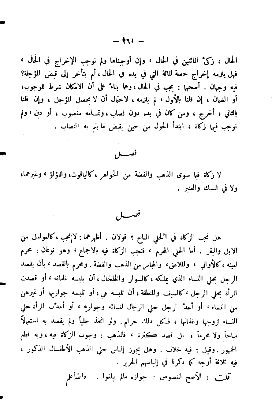 هَلْ تَجِبُ الزَّكَاةُ فِي الْحُلِيِّ الْمُبَاحِ؟ قَوْلَانِ، أَظْهَرُهُمَا: لَا تَجِبُ، كَالْعَوَامِلِ مِنَ الْإِبِلِ وَالْبَقَرِ. أَمَّا الْحُلِيُّ الْمُحَرَّمُ فَتَجِبُ الزَّكَاةُ فِيهِ بِالْإِجْمَاعِ. وَهُوَ نَوْعَانِ: مُحَرِّمٌ لِعَيْنِهِ كَالْأَوَانِي وَالْمَلَاعِقِ وَالْمَجَامِرِ مِنَ الذَّهَبِ وَالْفِضَّةِ، وَمُحَرَّمٌ بِالْقَصْدِ، بِأَنْ يَقْصِدَ الرَّجُلُ بِحُلِيِّ النِّسَاءِ الَّذِي يَمْلِكُهُ - كَالسِّوَارِ وَالْخَلْخَالِ - أَنْ يَلْبَسَهُ غِلْمَانُهُ، أَوْ قَصَدَتِ الْمَرْأَةُ بِحُلِيِّ الرَّجُلِ - كَالسَّيْفِ وَالْمِنْطَقَةِ - أَنْ تَلْبَسَهُ هِيَ أَوْ تَلْبَسَهُ جَوَارِيهَا أَوْ غَيْرُهُنَّ مِنَ النِّسَاءِ، أَوْ أَعَدَّ الرَّجُلُ حُلِيَّ الرِّجَالِ لِنِسَائِهِ وَجَوَارِيهِ، أَوْ أَعَدَّتِ الْمَرْأَةُ حُلِيَّ النِّسَاءِ لِزَوْجِهَا وَغِلْمَانِهَا، فَكُلُّ ذَلِكَ حَرَامٌ. وَلَوِ اتَّخَذَ حُلِيًّا وَلَمْ يَقْصِدْ بِهِ اسْتِعْمَالًا مُبَاحًا وَلَا مُحَرَّمًا، بَلْ قَصَدَ كَنْزَهُ - فَالْمَذْهَبُ: وُجُوبُ الزَّكَاةِ فِيهِ، وَبِهِ قَطَعَ الْجُمْهُورُ. وَقِيلَ: فِيهِ خِلَافٌ. وَهَلْ يَجُوزُ إِلْبَاسُ حُلِيِّ الذَّهَبِ الْأَطْفَالَ الذُّكُورَ، فِيهِ ثَلَاثَةُ أَوْجُهٍ كَمَا ذَكَرْنَا فِي إِلْبَاسِهِمُ الْحَرِيرَ.