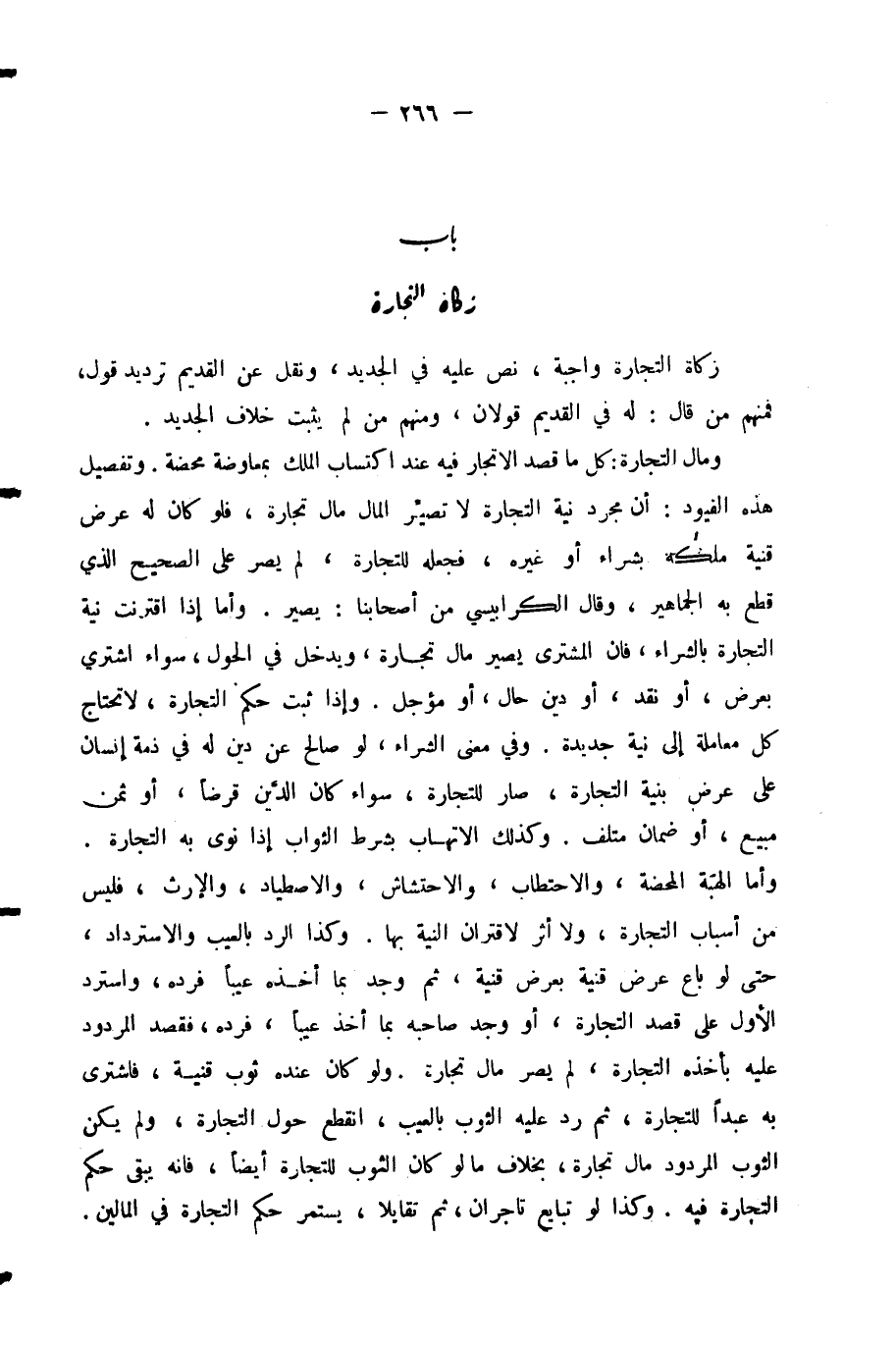 زَكَاةُ التِّجَارَةِ وَاجِبَةٌ، نُصَّ عَلَيْهِ فِي الْجَدِيدِ، وَنُقِلَ عَنِ الْقَدِيمِ تَرْدِيدُ قَوْلٍ، فَمِنْهُمْ مَنْ قَالَ: لَهُ فِي الْقَدِيمِ قَوْلَانِ، وَمِنْهُمْ مَنْ لَمْ يُثْبِتْ خِلَافَ الْجَدِيدِ.
