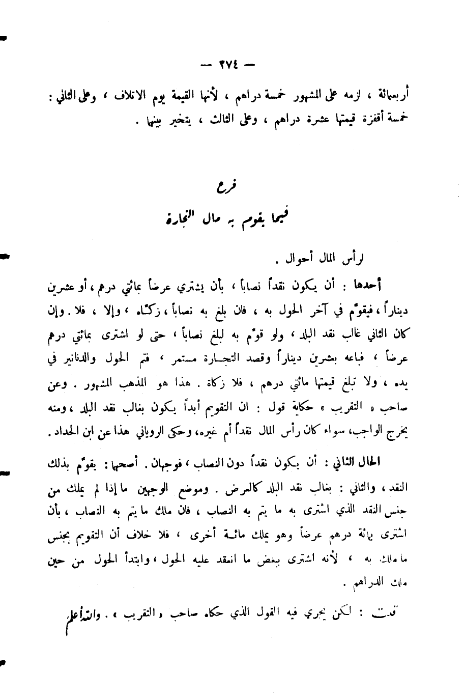 لِرَأْسِ الْمَالِ أَحْوَالٌ.