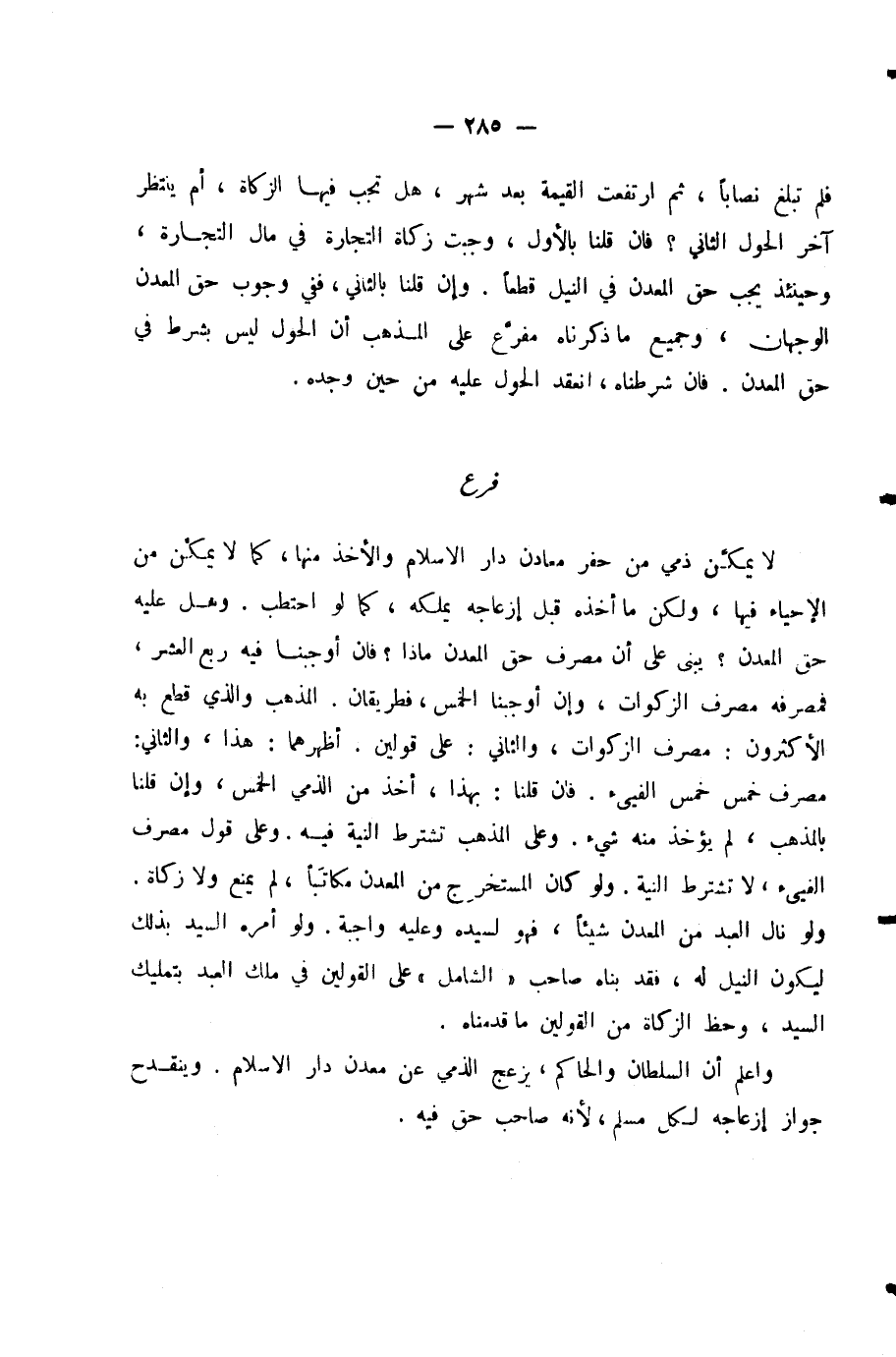 لَا يُمَكَّنُ ذَمِّيٌّ مِنْ حَفْرِ مَعَادِنِ دَارِ الْإِسْلَامِ وَالْأَخْذِ مِنْهَا، كَمَا لَا يُمَكَّنُ مِنَ الْإِحْيَاءِ فِيهَا، وَلَكِنْ مَا أَخَذَهُ قَبْلَ إِزْعَاجِهِ يَمْلِكُهُ، كَمَا لَوِ احْتَطَبَ. وَهَلْ عَلَيْهِ حَقُّ الْمَعْدِنِ؟ يُبْنَى عَلَى أَنَّ مَصْرِفَ حَقِّ الْمَعْدِنِ مَاذَا؟ فَإِنْ أَوْجَبْنَا فِيهِ رُبُعَ الْعُشْرِ، فَمَصْرِفُهُ مَصْرِفُ الزَّكَوَاتِ، وَإِنْ أَوْجَبْنَا الْخُمُسَ، فَطَرِيقَانِ: الْمَذْهَبُ وَالَّذِي قَطَعَ بِهِ الْأَكْثَرُونَ: مَصْرِفُ الزَّكَوَاتِ، وَالثَّانِي: عَلَى قَوْلَيْنِ أَظْهَرُهُمَا هَذَا، وَالثَّانِي: مَصْرِفُ خُمُسِ خُمُسِ الْفَيْءِ. فَإِنْ قُلْنَا بِهَذَا أُخِذَ مِنَ الذِّمِّيِّ الْخُمُسُ، وَإِنْ قُلْنَا بِالْمَذْهَبِ لَمْ يُؤْخَذْ مِنْهُ شَيْءٌ. وَعَلَى الْمَذْهَبِ تُشْتَرَطُ النِّيَّةُ فِيهِ. وَعَلَى قَوْلِ مَصْرِفِ الْفَيْءِ، لَا تُشْتَرَطُ النِّيَّةُ. وَلَوْ كَانَ الْمُسْتَخْرِجُ مِنَ الْمَعْدِنِ مُكَاتَبًا لَمْ يُمْنَعْ، وَلَا زَكَاةَ. وَلَوْ نَالَ الْعَبْدُ مِنَ الْمَعْدِنِ شَيْئًا فَهُوَ لِسَيِّدِهِ وَعَلَيْهِ وَاجِبَةٌ. وَلَوْ أَمَرَهُ السَّيِّدُ بِذَلِكَ لِيَكُونَ النَّيْلُ لَهُ، فَقَدْ بَنَاهُ صَاحِبُ «الشَّامِلِ» عَلَى الْقَوْلَيْنِ فِي مِلْكِ الْعَبْدِ بِتَمْلِيكِ السَّيِّدِ، وَحَظُّ الزَّكَاةِ مِنَ الْقَوْلَيْنِ مَا قَدَّمْنَاهُ.