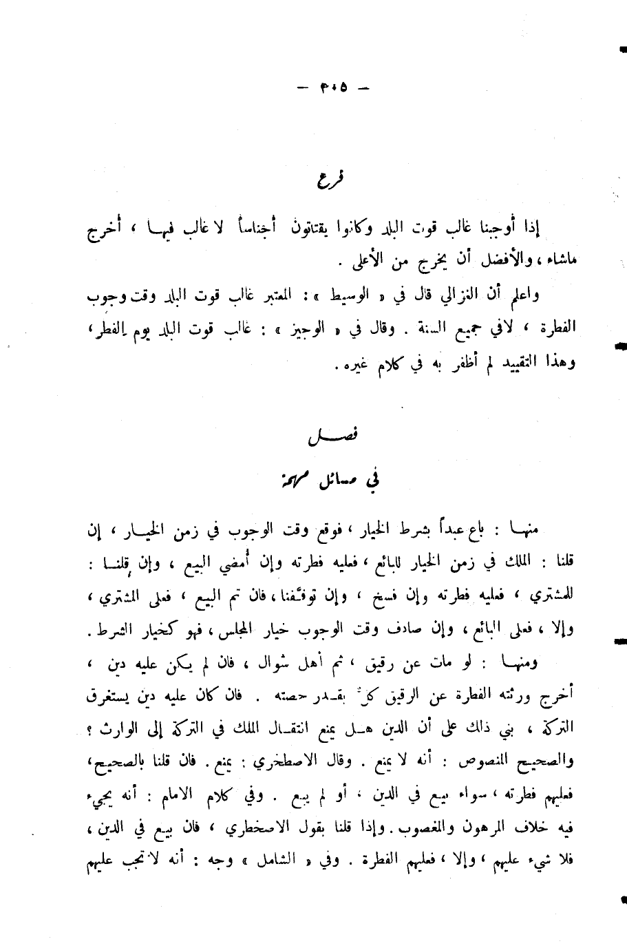 وَاعْلَمْ أَنَّ الْغَزَالِيَّ قَالَ فِي «الْوَسِيطِ» : الْمُعْتَبَرُ غَالِبُ قُوتِ الْبَلَدِ وَقْتَ وُجُوبِ الْفِطْرَةِ، لَا فِي جَمِيعِ السَّنَةِ. وَقَالَ فِي «الْوَجِيزِ» : غَالِبُ قُوتِ الْبَلَدِ يَوْمَ الْفِطْرِ، وَهَذَا التَّقْيِيدُ لَمْ أَظْفَرْ بِهِ فِي كَلَامِ غَيْرِهِ.
