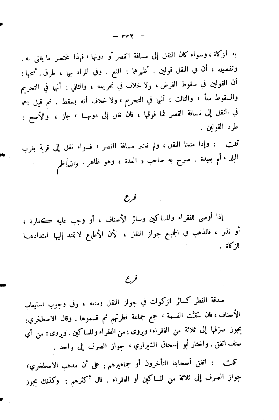 قُلْتُ: اتَّفَقَ أَصْحَابُنَا الْمُتَأَخِّرُونَ أَوْ جَمَاهِيرُهُمْ: عَلَى أَنَّ مَذْهَبَ الْإِصْطَخْرِيِّ، جَوَازُ الصَّرْفِ إِلَى ثَلَاثَةٍ مِنَ الْمَسَاكِينِ وَالْفُقَرَاءِ.