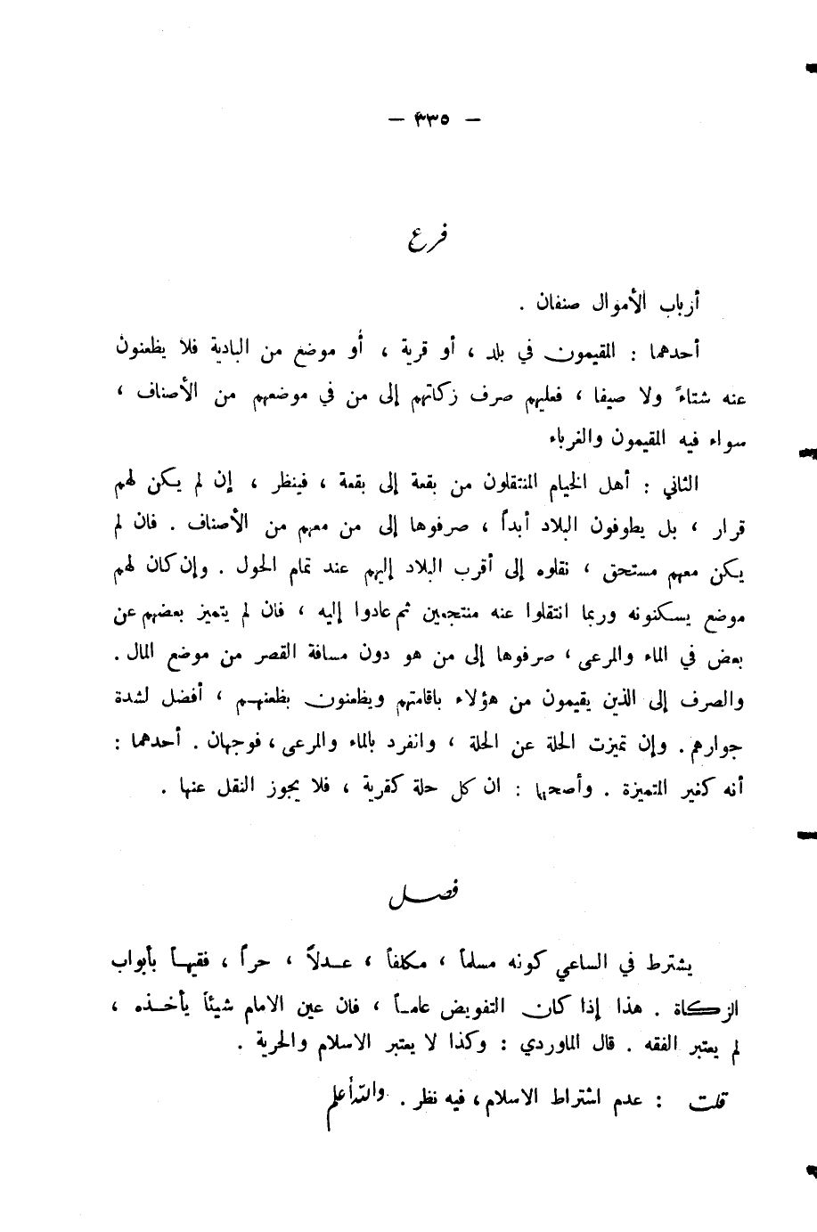 وَالصَّرْفُ إِلَى الَّذِينَ يُقِيمُونَ مِنْ هَؤُلَاءِ بِإِقَامَتِهِمْ وَيَظْعَنُونَ بِظَعْنِهِمْ أَفْضَلُ لِشِدَّةِ جِوَارِهِمْ. وَإِنْ تَمَيَّزَتِ الْحِلَّةُ عَنِ الْحِلَّةِ، وَانْفَرَدَ بِالْمَاءِ وَالْمَرْعَى، فَوَجْهَانِ.