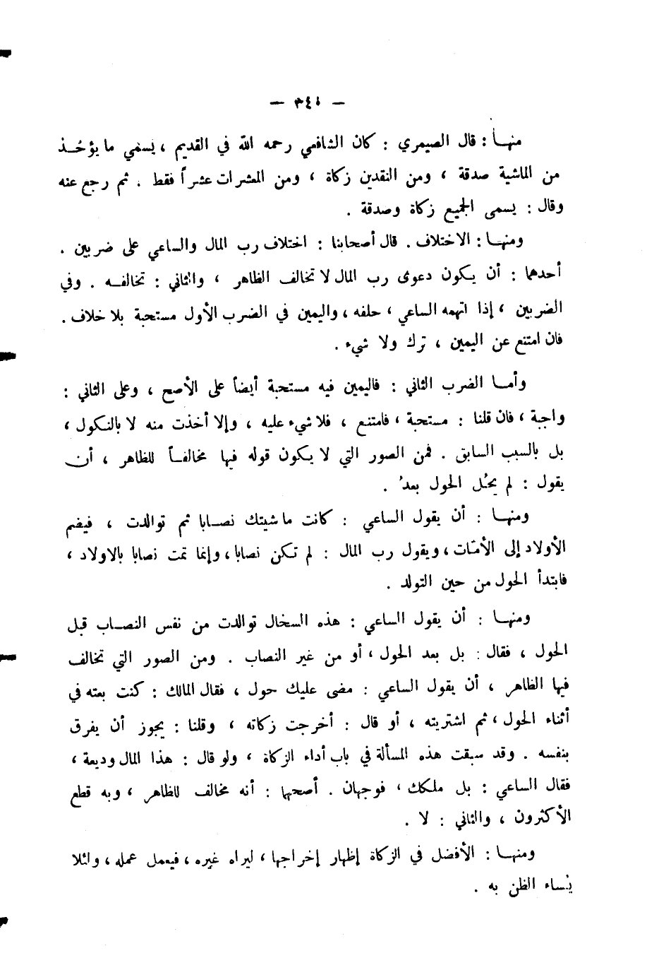 وَمِنْهَا: الِاخْتِلَافُ. قَالَ أَصْحَابُنَا: اخْتِلَافُ رَبِّ الْمَالِ وَالسَّاعِي عَلَى ضَرْبَيْنِ.