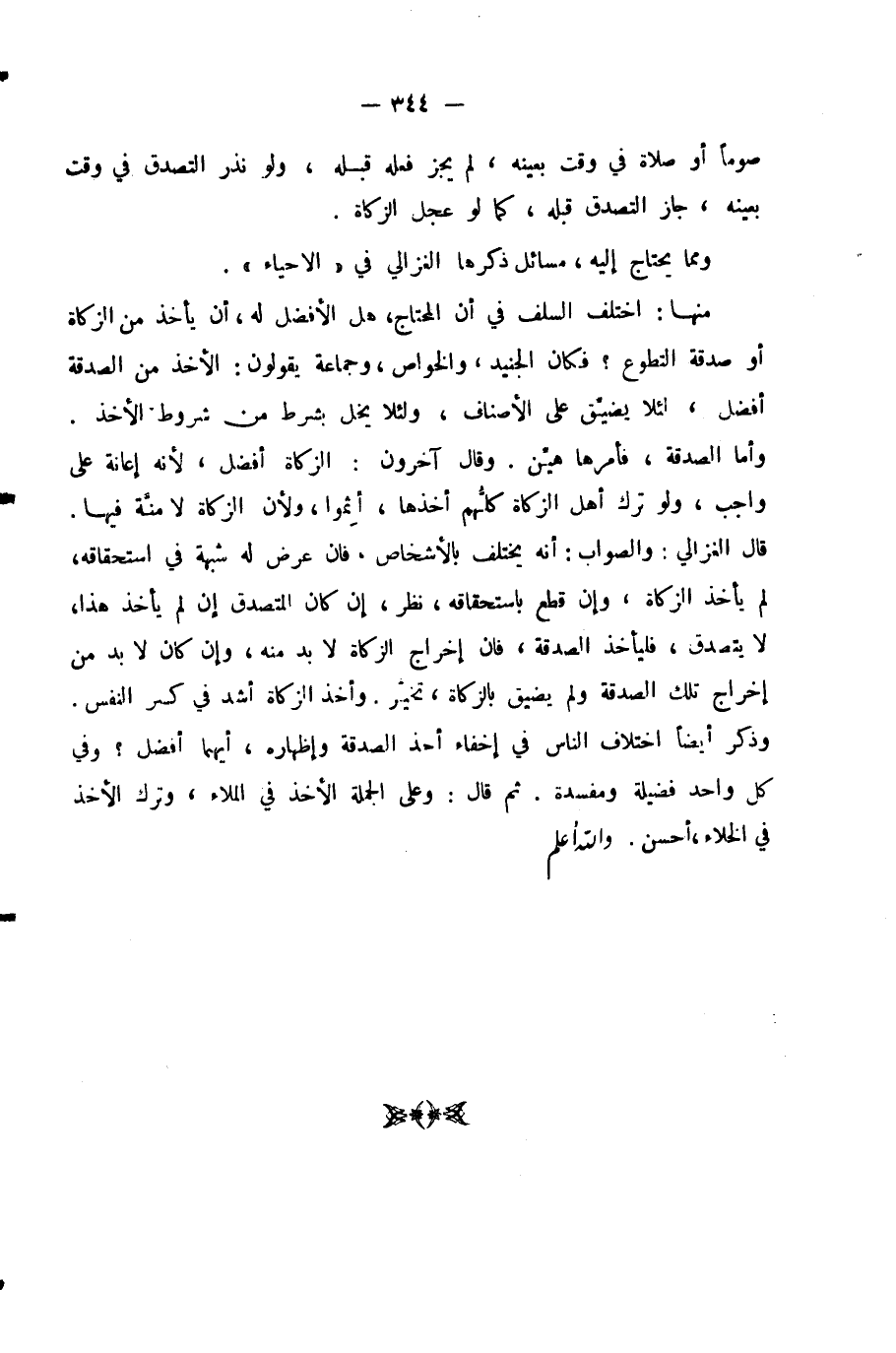 وَمِمَّا يُحْتَاجُ إِلَيْهِ، مَسَائِلُ ذَكَرَهَا الْغَزَالِيُّ فِي «الِإِحْيَاءِ» .