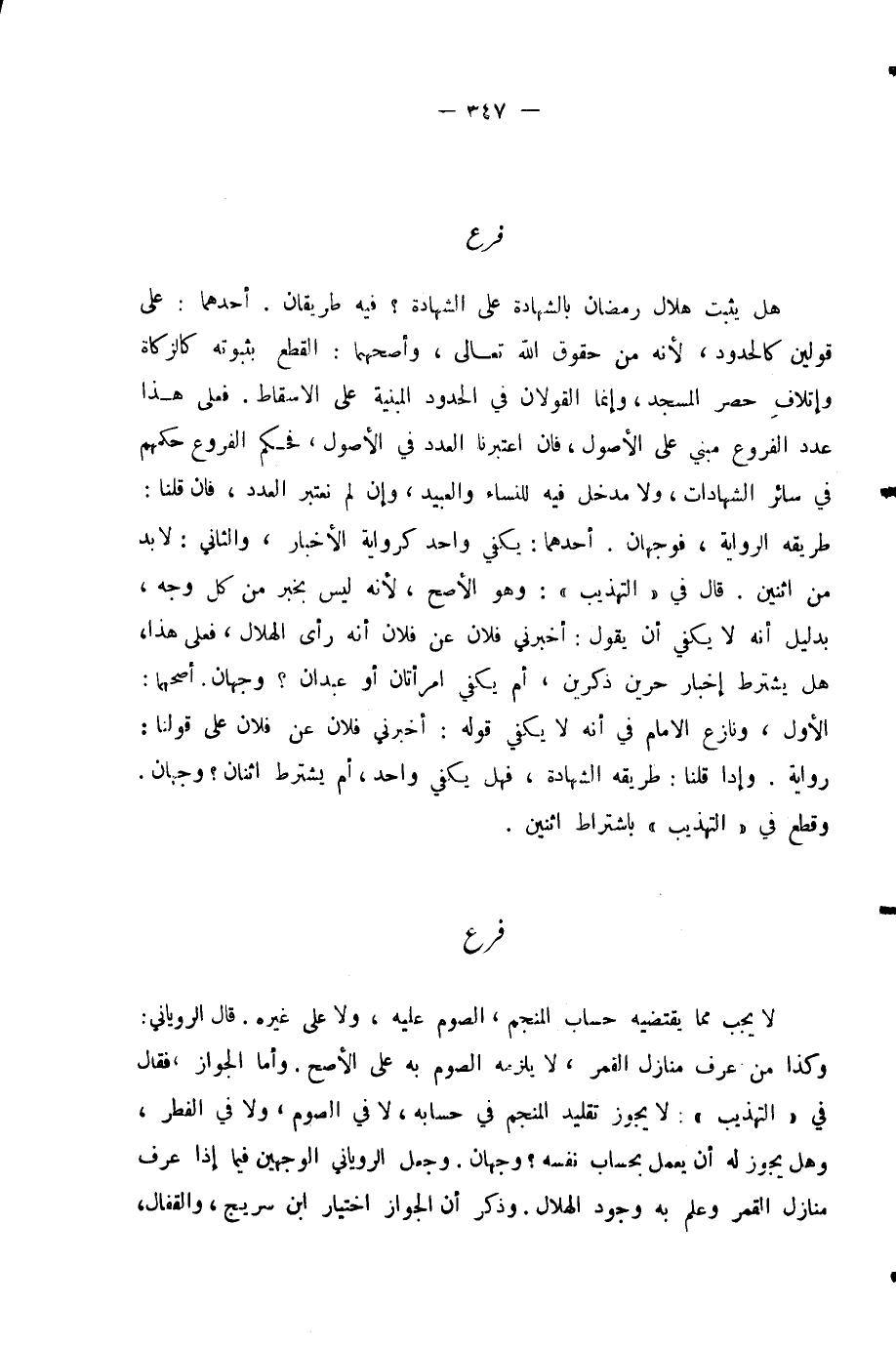 وَجَعَلَ الرُّويَانِيُّ الْوَجْهَيْنِ فِيمَا إِذَا عُرِفَ مَنَازِلُ الْقَمَرِ وَعُلِمَ بِهِ وُجُودُ الْهِلَالِ. وَذَكَرَ أَنَّ الْجَوَازَ اخْتِيَارُ ابْنِ سُرَيْجٍ، وَالْقَفَّالِ،