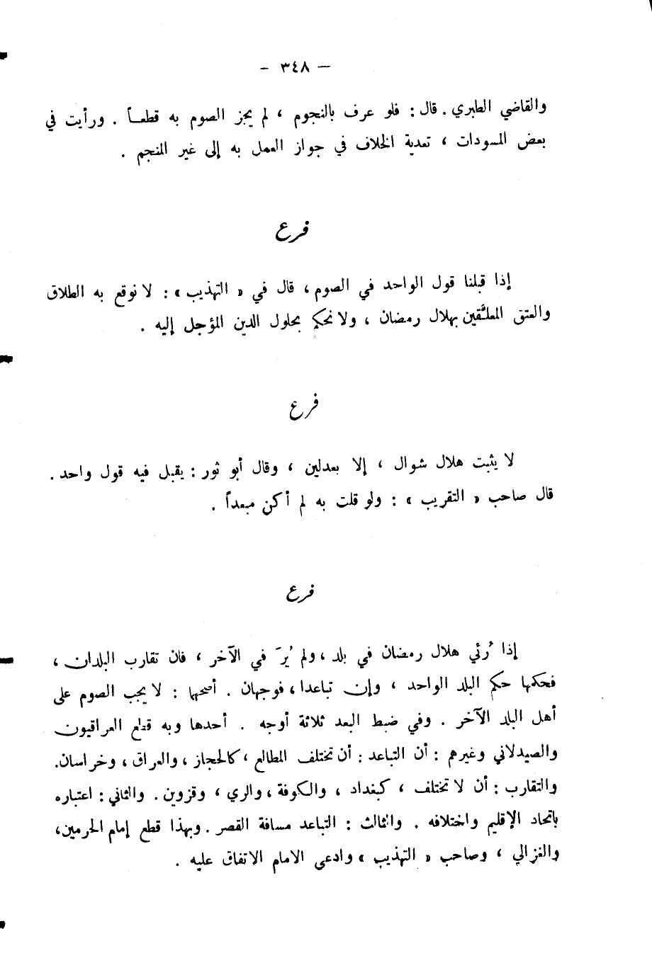 وَالْقَاضِي الطَّبَرِيِّ. قَالَ: فَلَوْ عُرِفَ بِالنُّجُومِ، لَمْ يَجُزِ الصَّوْمُ بِهِ قَطْعًا. وَرَأَيْتُ فِي بَعْضِ الْمُسَوِّدَاتِ، تَعْدِيَةَ الْخِلَافِ فِي جَوَازِ الْعَمَلِ بِهِ إِلَى غَيْرِ الْمُنَجِّمِ.