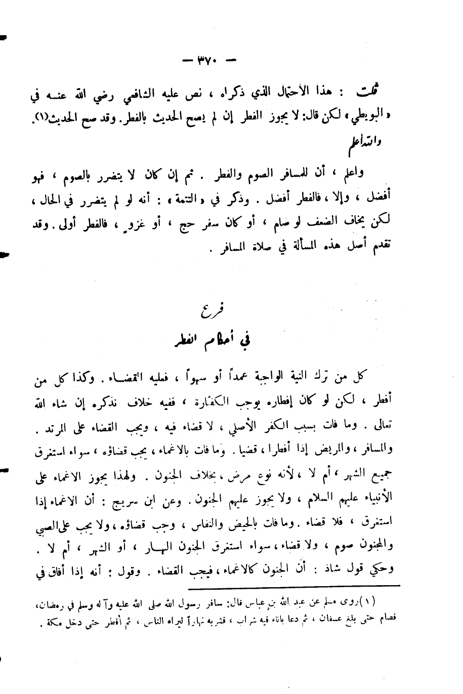 قُلْتُ: هَذَا الِاحْتِمَالُ الَّذِي ذَكَرَاهُ، نَصَّ عَلَيْهِ الشَّافِعِيُّ - رَضِيَ اللَّهُ عَنْهُ - فِي «الْبَوَيْطِيِّ» لَكِنْ قَالَ: لَا يَجُوزُ الْفِطْرُ إِنْ لَمْ يَصِحَّ الْحَدِيثُ بِالْفِطْرِ. وَقَدْ صَحَّ الْحَدِيثُ. وَاللَّهُ أَعْلَمُ.