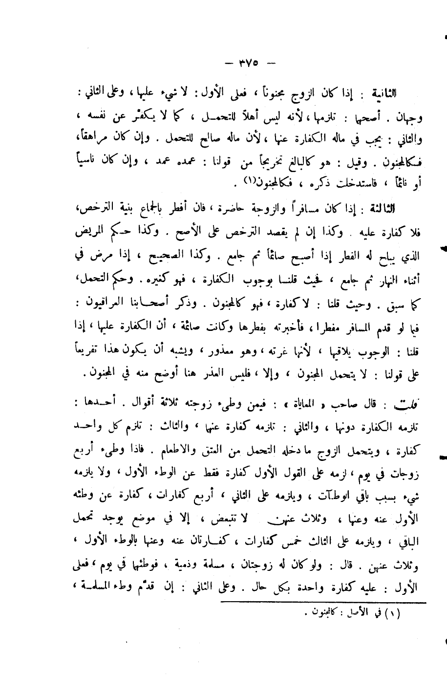 وَذَكَرَ أَصْحَابُنَا الْعِرَاقِيُّونَ: فِيمَا لَوْ قَدِمَ الْمُسَافِرُ مُفْطِرًا، فَأَخْبَرَتْهُ بِفِطْرِهَا وَكَانَتْ صَائِمَةً، أَنَّ الْكَفَّارَةَ عَلَيْهَا، إِذَا قُلْنَا: الْوُجُوبُ يُلَاقِيهَا، لِأَنَّهَا غَرَّتْهُ، وَهُوَ مَعْذُورٌ، وَيُشْبِهُ أَنْ يَكُونَ هَذَا تَفْرِيعًا عَلَى قَوْلِنَا: لَا يَتَحَمَّلُ الْمَجْنُونُ، وَإِلَّا، فَلَيْسَ الْعُذْرُ هُنَا أَوْضَحَ مِنْهُ فِي الْمَجْنُونِ.