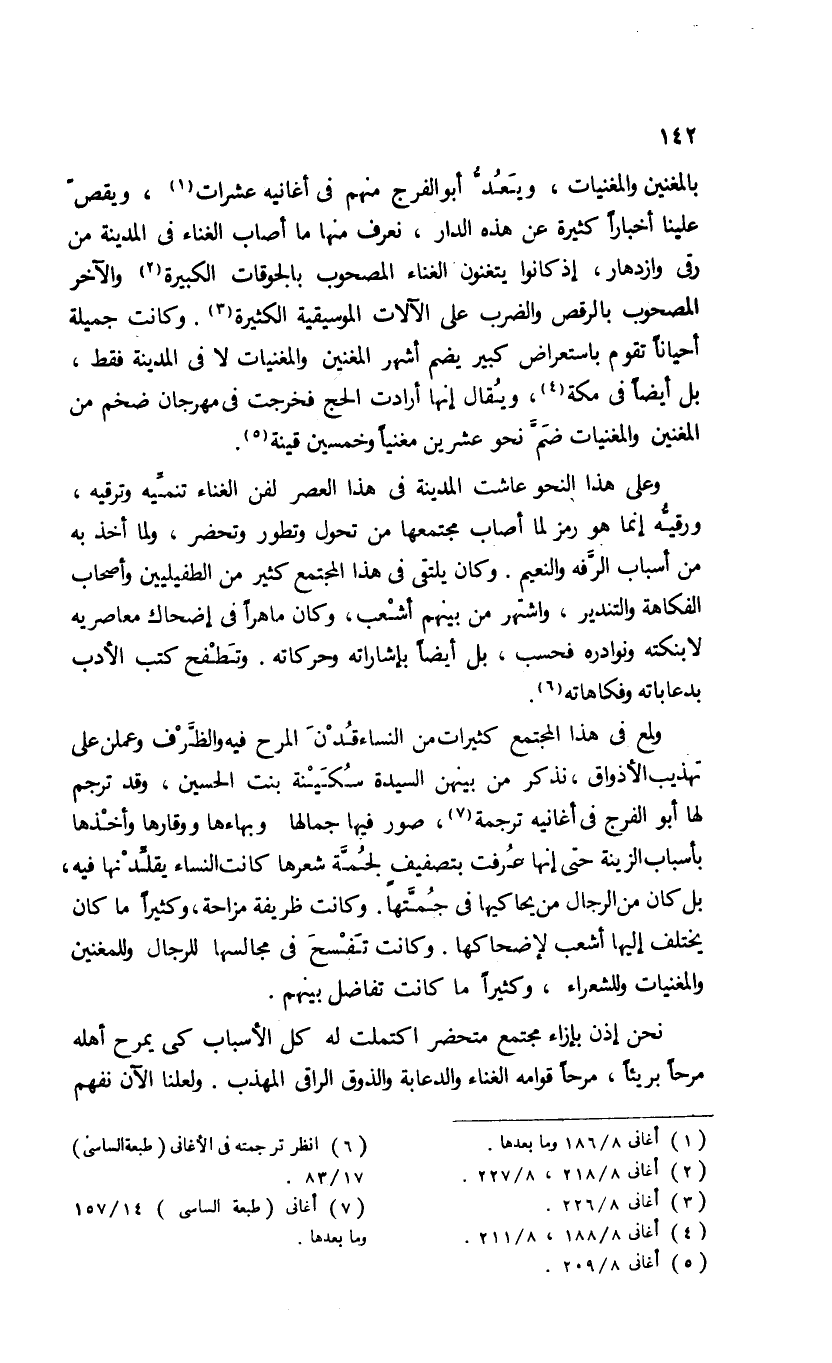 بالمغنين والمغنيات، ويعدّ أبو الفرج منهم فى أغانيه عشرات (¬1)، ويقصّ علينا أخبارا كثيرة عن هذه الدار، نعرف منها ما أصاب الغناء فى المدينة من رقى وازدهار، إذ كانوا يتغنون الغناء المصحوب بالجوقات الكبيرة (¬2) والآخر المصحوب بالرقص والضرب على الآلات الموسيقية الكثيرة (¬3). وكانت جميلة أحيانا تقوم باستعراض كبير يضم أشهر المغنين والمغنيات لا فى المدينة فقط، بل أيضا فى مكة (¬4)، ويقال إنها أرادت الحج فخرجت فى مهرجان ضخم من المغنين والمغنيات ضمّ نحو عشرين مغنيا وخمسين قينة (¬5).