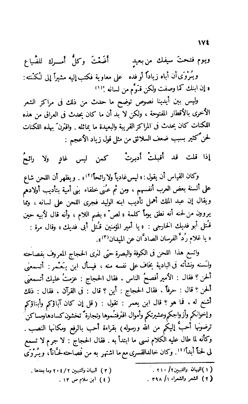 وليس بين أيدينا نصوص توضح ما حدث من ذلك فى مراكز الشعر الأخرى بالأقطار المفتوحة، ولكن لا بد أن ما كان يحدث فى العراق من هذه اللكنات كان يحدث فى المراكز القريبة والبعيدة ما يماثله. واقترن بهذه اللكنات لحن كثير بسبب ضعف السلائق من مثل قول زياد الأعجم: