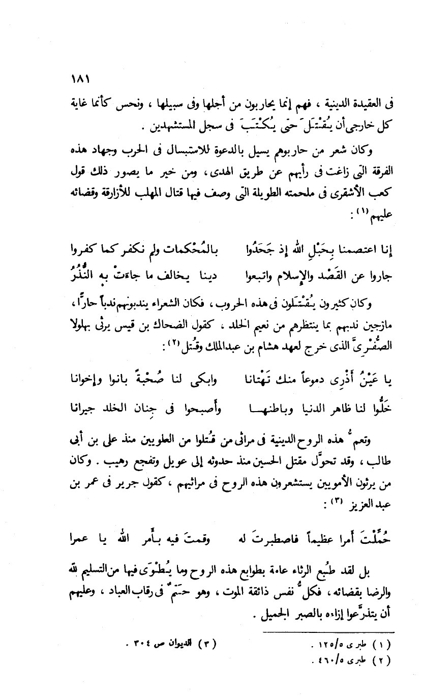 فى العقيدة الدينية، فهم إنما يحاربون من أجلها وفى سبيلها، ونحس كأنما غاية كل خارجى أن يقتل حتى يكتب فى سجل المستشهدين.