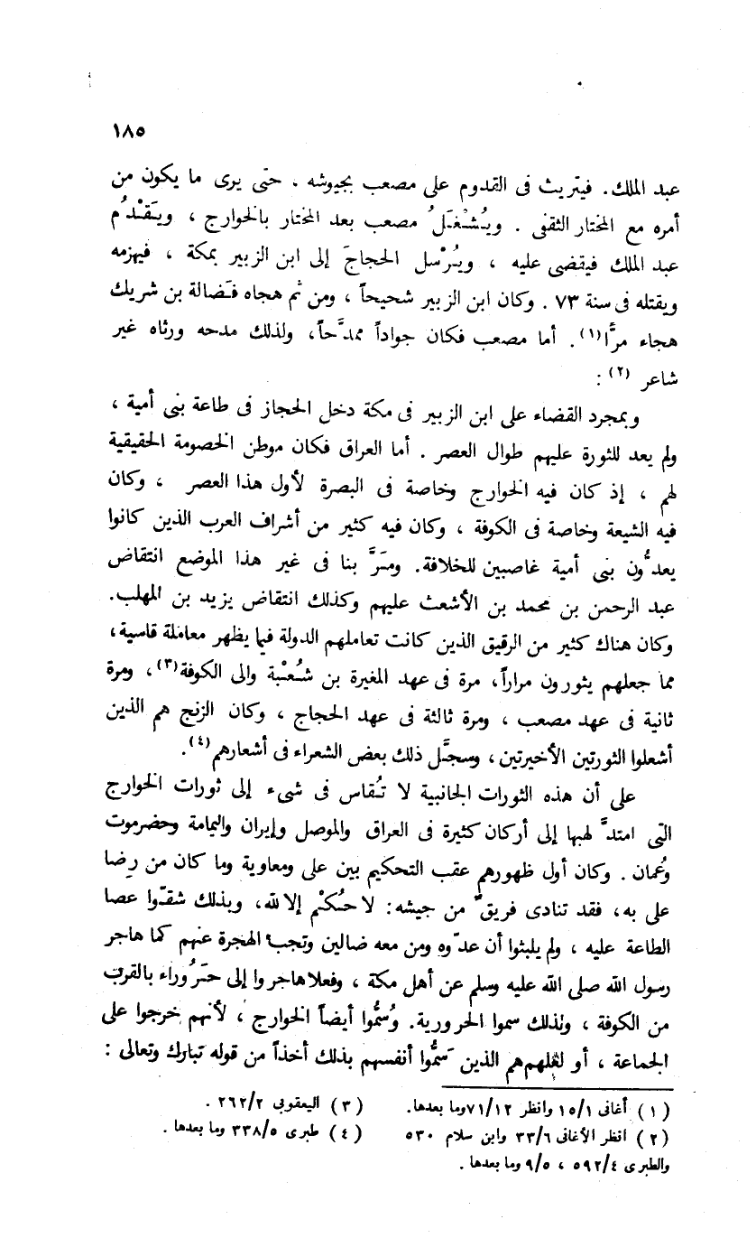 وكان هناك كثير من الرقيق الذين كانت تعاملهم الدولة فيما يظهر معاملة قاسية، مما جعلهم يثورون مرارا، مرة فى عهد المغيرة بن شعبة والى الكوفة (¬3)، ومرة ثانية فى عهد مصعب، ومرة ثالثة فى عهد الحجاج، وكان الزنج هم الذين أشعلوا الثورتين الأخيرتين، وسجّل ذلك بعض الشعراء فى أشعارهم (¬4).