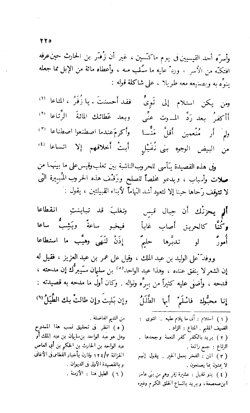 (¬4) بنو نفيل: عشيرة زفر وهم من بنى عامر ابن صعصعة، ويريد باتساع الخلق الكرم وغيره من الشيم الفاضلة.