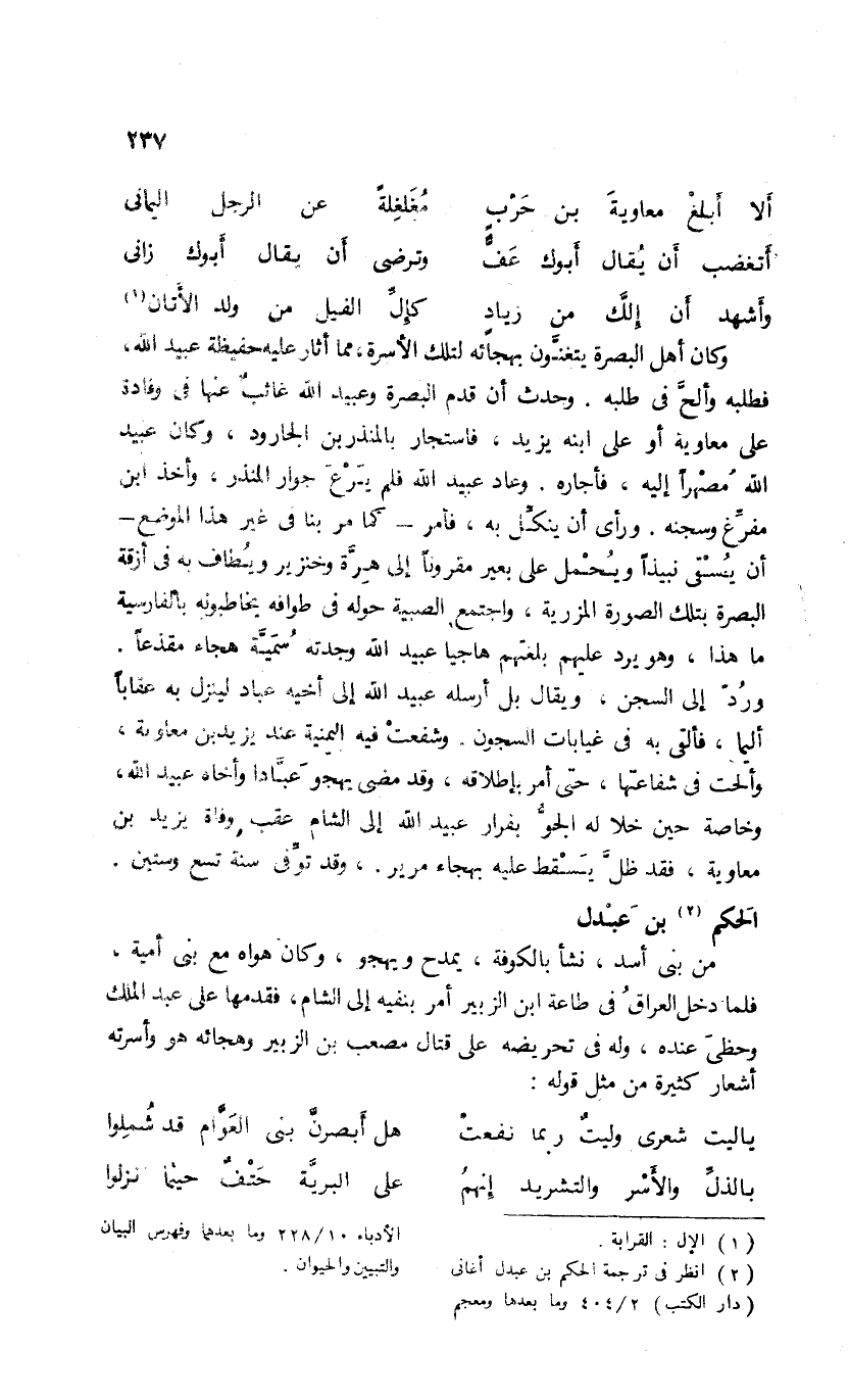 (¬2) انظر فى ترجمة الحكم بن عبدل أغانى (دار الكتب) 2/ 404 وما بعدها ومعجم الأدباء 10/ 228 وما بعدها وفهرس البيان والتبيين والحيوان.