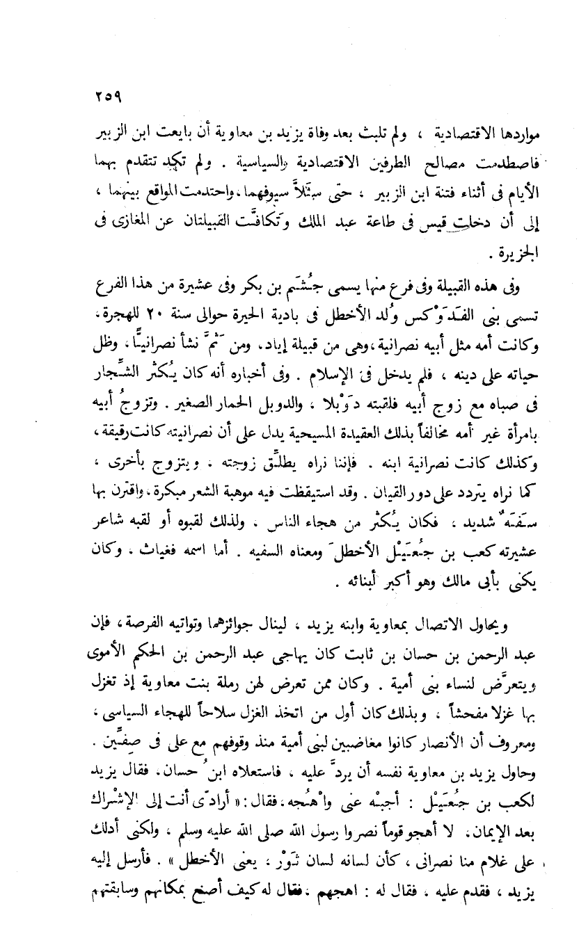 وفى هذه القبيلة وفى فرع منها يسمى جشم بن بكر وفى عشيرة من هذا الفرع تسمى بنى الفدوكس ولد الأخطل فى بادية الحيرة حوالى سنة 20 للهجرة.