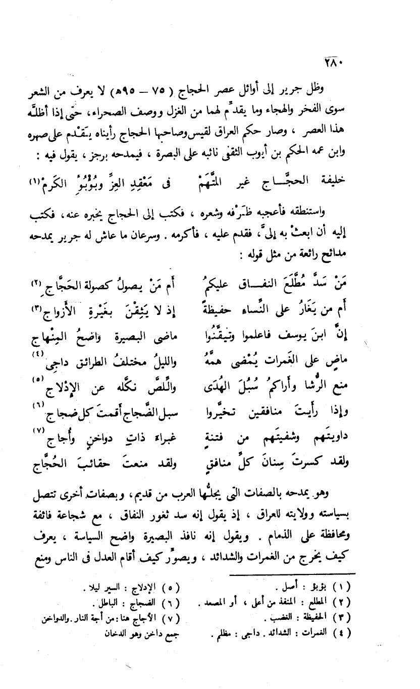 واستنطقه فأعجبه ظرفه وشعره، فكتب إلى الحجاج يخبره عنه، فكتب إليه أن ابعث به إلىّ، فقدم عليه، فأكرمه. وسرعان ما عاش له جرير يمدحه مدائح رائعة من مثل قوله: