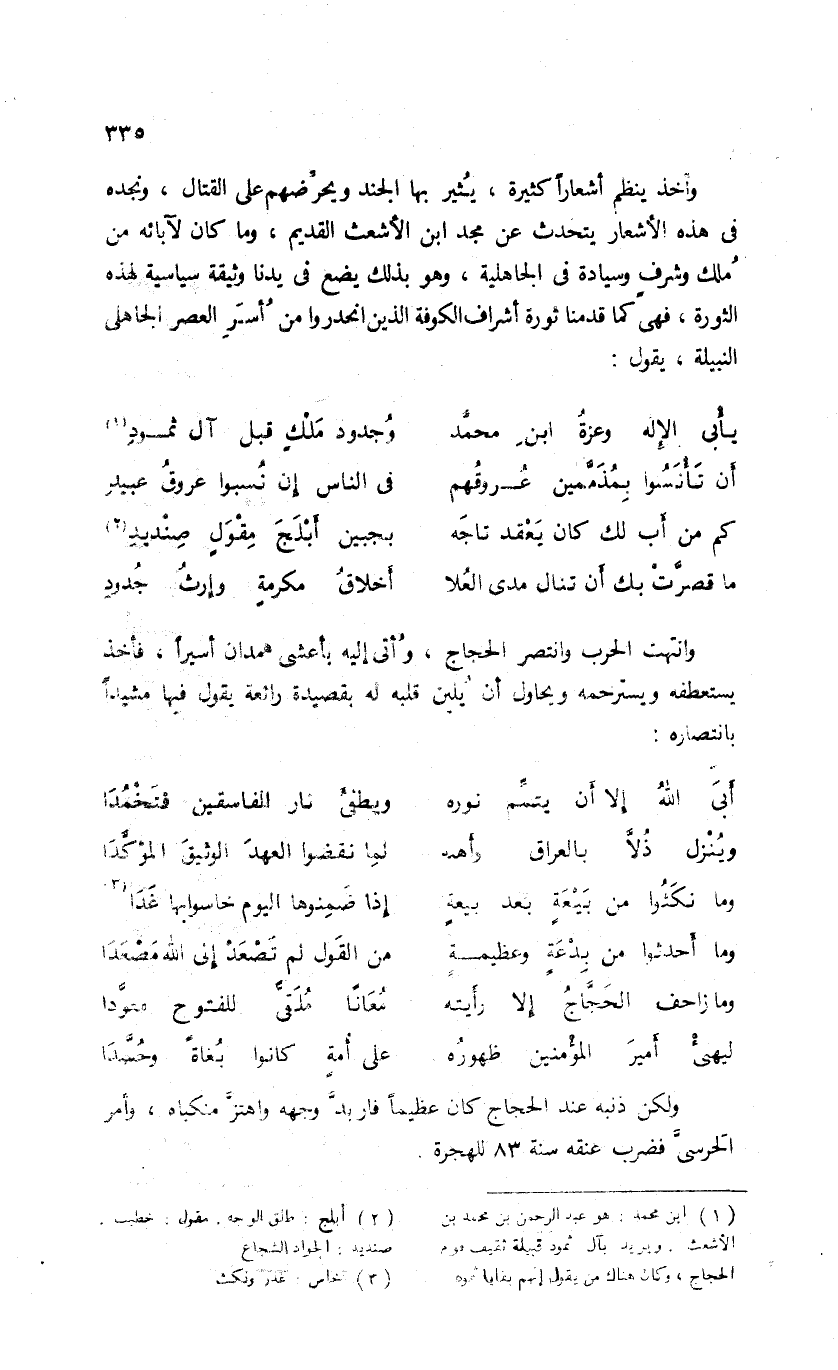 (¬1) ابن محمد: هو عبد الرحمن بن محمد بن الأشعث. ويريد بآل ثمود قبيلة ثقيف قوم الحجاج، وكان هناك من يقول إنهم بقايا ثمود.