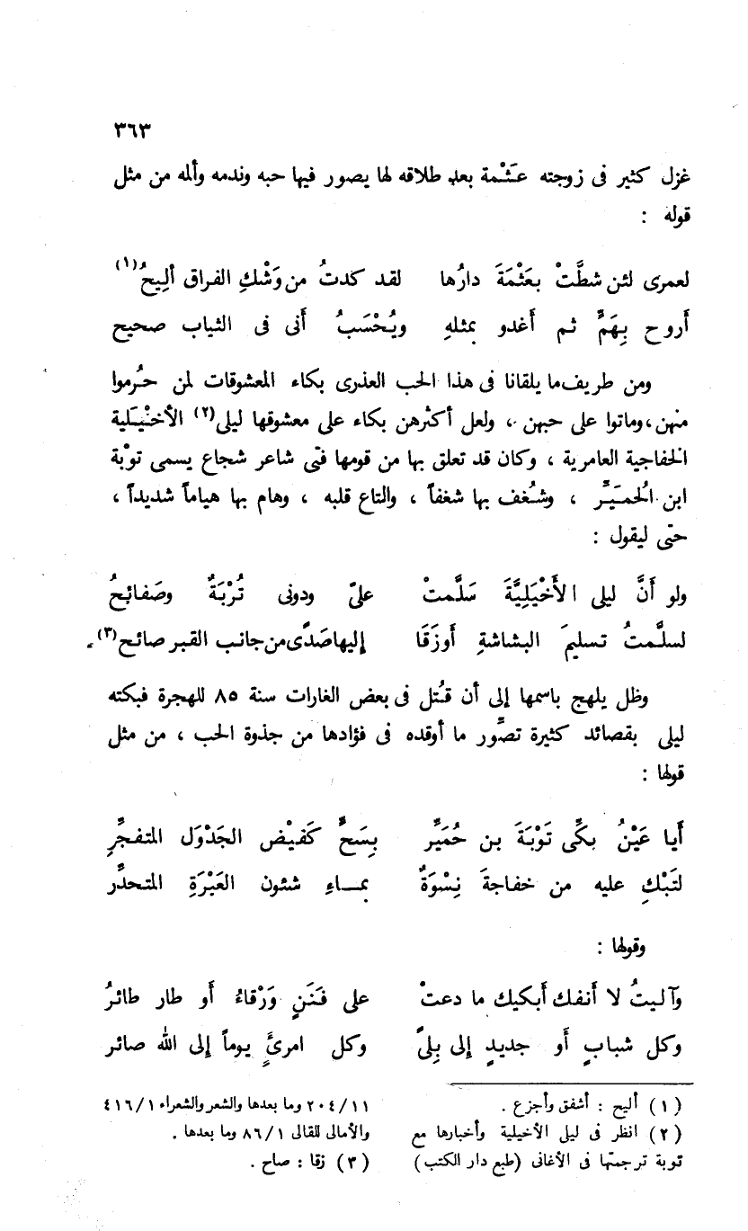 (¬2) انظر فى ليلى الأخيلية وأخبارها مع توبة ترجمتها فى الأغانى (طبع دار الكتب) 11/ 204 وما بعدها والشعر والشعراء 1/ 416 والأمالى للقالى 1/ 86 وما بعدها.