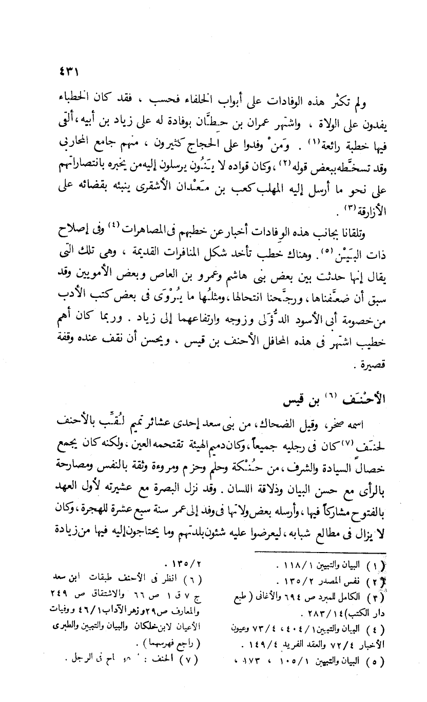 (¬6) انظر فى الأحنف طبقات ابن سعد ج 7 ق 1 ص 66 والاشتقاق ص 249 والمعارف ص 29 وزهر الآداب 1/ 46 ووفيات الأعيان لابن خلكان والبيان والتبيين والطبرى (راجع فهرسهما).