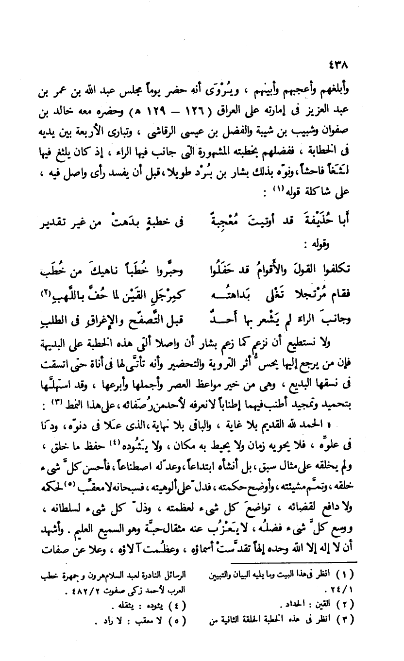 (¬3) انظر فى هذه الخطبة الحلقة الثانية من الرسائل النادرة لعبد السلام هرون وجمهرة خطب العرب لأحمد زكى صفوت 2/ 482.