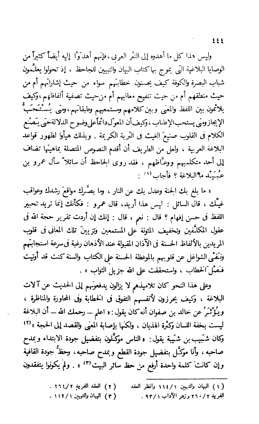 (¬1) البيان والتبيين 1/ 114 وانظر العقد الفريد 2/ 260 وزهر الآداب 1/ 93.