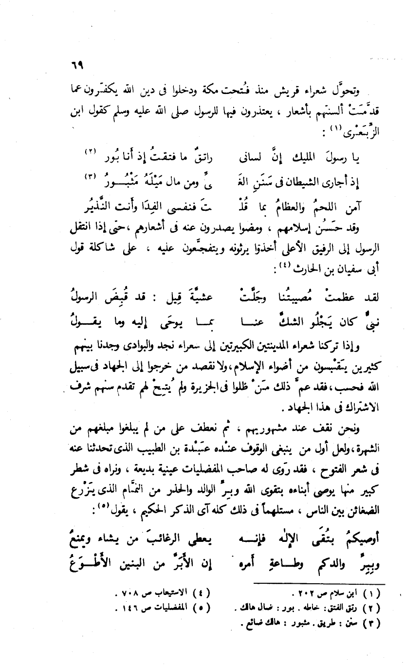 وقد حسن إسلامهم، ومضوا يصدرون عنه فى أشعارهم، حتى إذا انتقل الرسول إلى الرفيق الأعلى أخذوا يرثونه ويتفجّعون عليه، على شاكلة قول أبى سفيان بن الحارث (¬4):