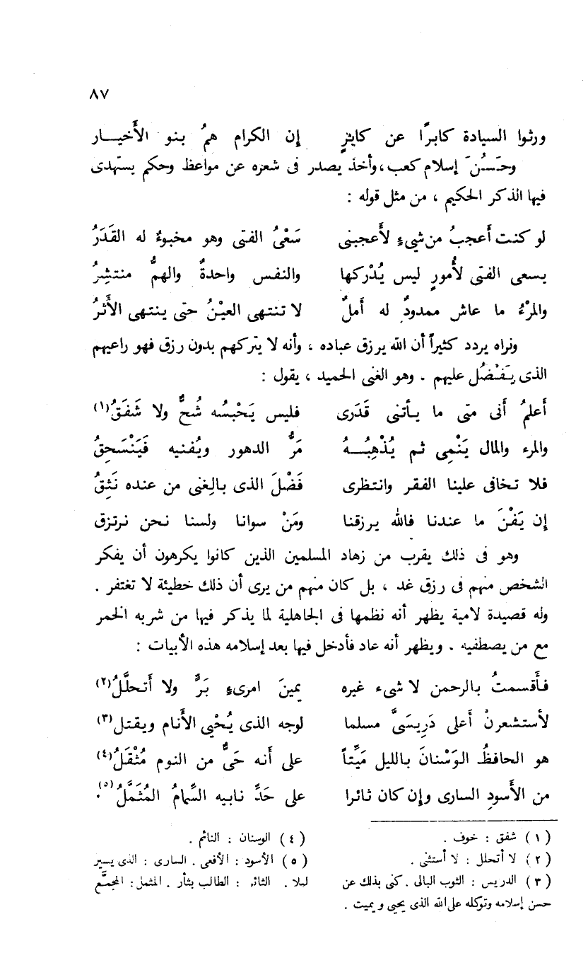 (¬5) الأسود: الأفعى. السارى: الذى يسير ليلا. الثائر: الطالب بثأر. المثمل: المجمّع