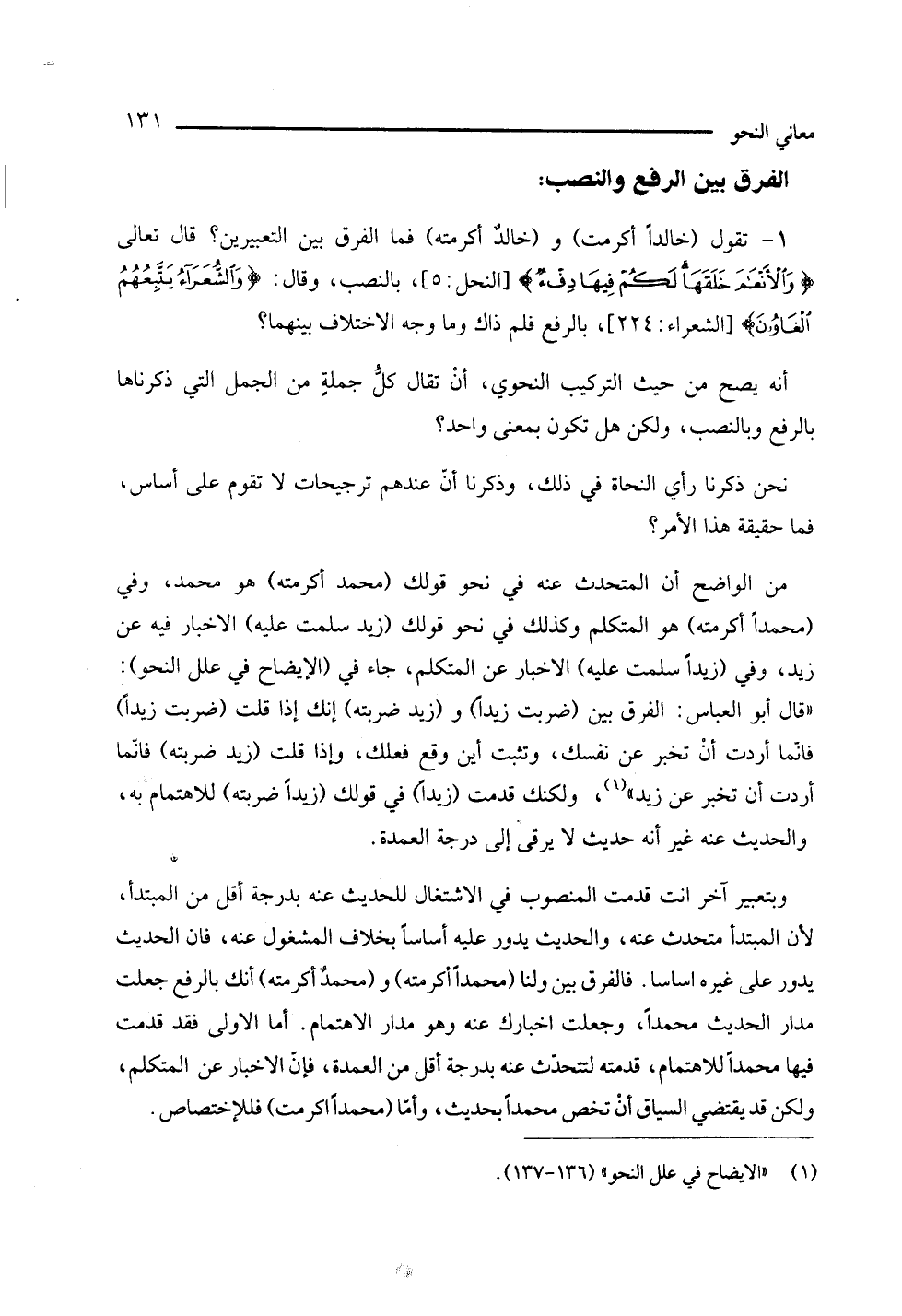 (¬1) الإيضاح في علل النحو 136 - 137