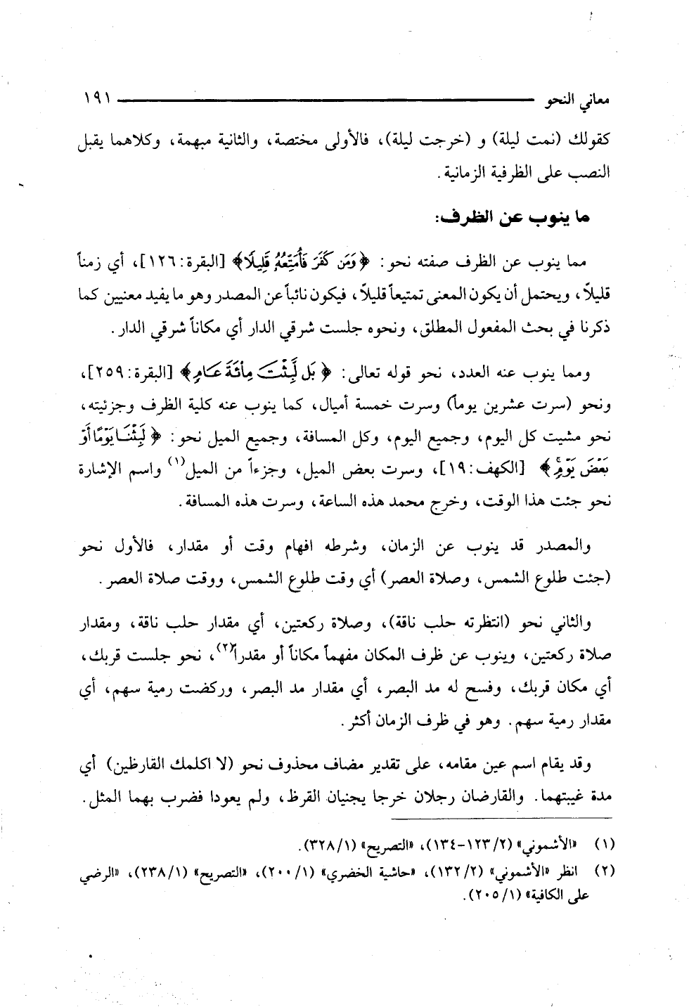 (¬2) انظر الأشوني: 2/ 132، حاشية الخضري 1/ 200 التصريح 1/ 238، الرضي على الكافية 1/ 205