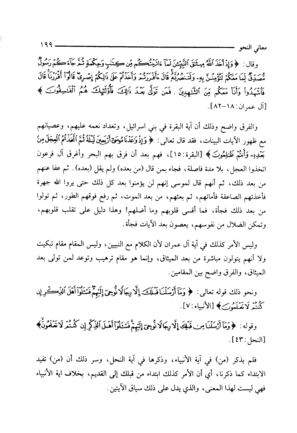 وليس الأمر كذلك في آية آل عمران، لأن الكلام مع النبيين، وليس المقام مقام تبكيت ولا أنهم يتولون مباشرة من بعد الميثاق، وإنما هو مقام ترهيب وتوعد لمن تولى بعد الميثاق، والفرق واضح بين المقامين.