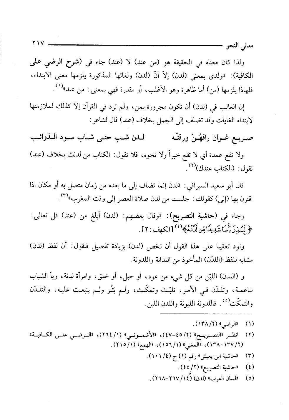 وجاء في (حاشية التصريح): " وقال بعضهم (لدن) أبلغ من (عند) قال تعالى: {لينذر بأسا شديدا من لدنه} (¬4) [الكهف: 2].