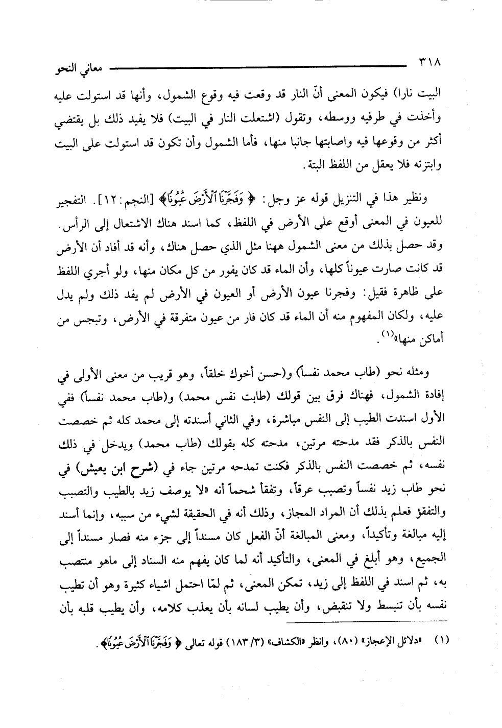 (¬1) دلائل الإعجاز 80، وانظر الكشاف 3/ 183، قوله تعالى: {وفجرنا الأرض عيونا}.