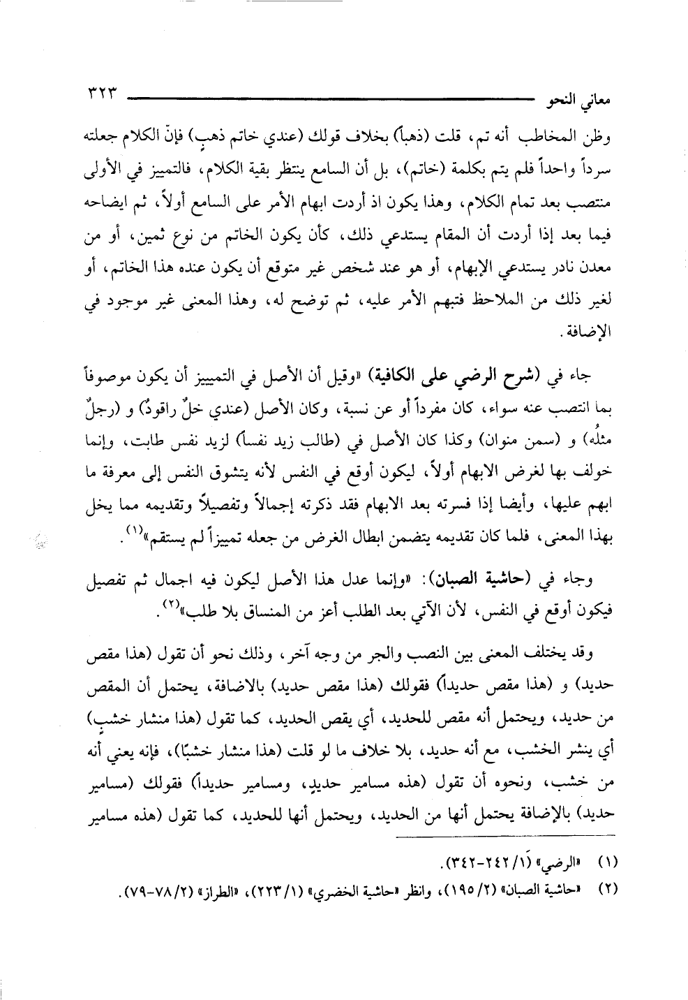 (¬2) حاشية الصبان 2/ 195، وانظر حاشية الخضري 1/ 223، الطراز 2/ 78 - 79