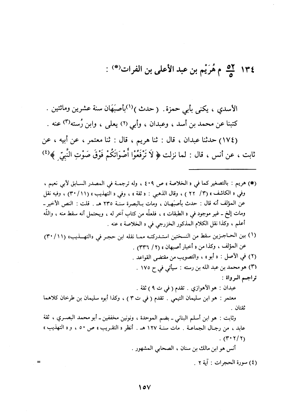 §هُرَيْمُ بْنُ عَبْدِ الْأَعْلَى بْنِ الْفُرَاتِ الْأَسَدِيُّ , يُكْنَى بِأَبِي حَمْزَةَ , حَدَّثَ بأَصْبَهَانَ سَنَةَ عِشْرِينَ وَمِائَتَيْنِ كَتَبْنَا عَنْ مُحَمَّدِ بْنِ أَسَدٍ , وَعَبْدَانَ , وَأَبِي يَعْلَى , وَابْنِ رُسْتَهْ عَنْهُ