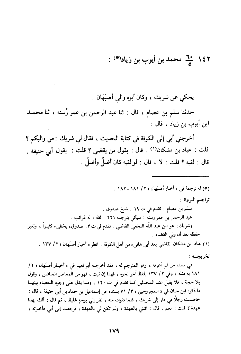 §142 - مُحَمَّدُ بْنُ أَيُّوبَ بْنِ زِيَادٍ يَحْكِي عَنْ شَرِيكٍ , وَكَانَ أَبُوهُ وَالِيَ أَصْبَهَانَ