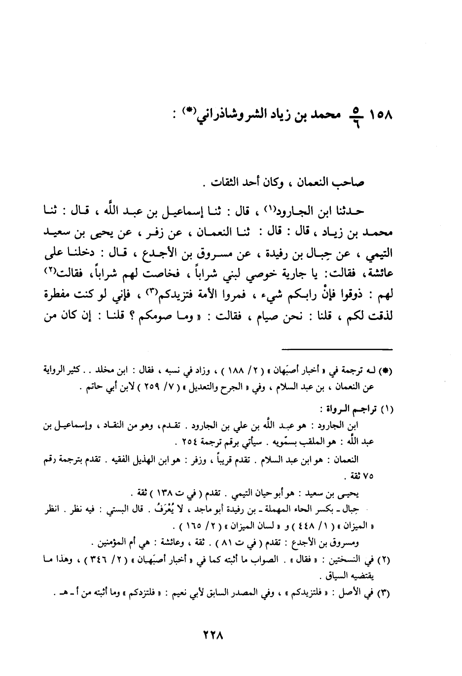 §158 - مُحَمَّدُ بْنُ زِيَادٍ الشَّرْوَشَاذِرَانِيُّ صَاحِبُ النُّعْمَانِ , وَكَانَ أَحَدَ الثِّقَاتِ