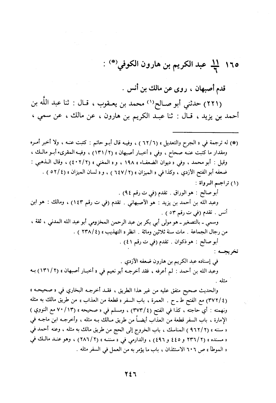 §165 - عَبْدُ الْكَرِيمِ بْنُ هَارُونَ الْكُوفِيُّ قَدِمَ أَصْبَهَانَ , رَوَى عَنْ مَالِكِ بْنِ أَنَسٍ