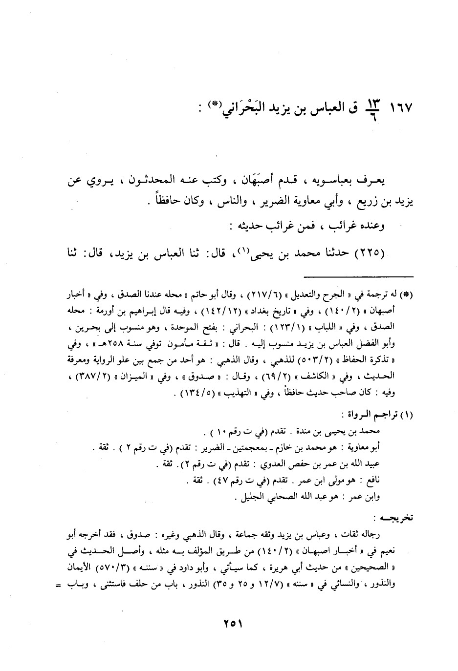 §الْعَبَّاسُ بْنُ يَزِيدَ الْبَحْرَانِيُّ يُعْرَفُ بِعَبَّاسَوَيْهِ , قَدِمَ أَصْبَهَانَ , وَكَتَبَ عَنْهُ الْمُحْدِثُونَ , يَرْوِي عَنْ يَزِيدَ بْنِ زُرَيْعٍ , وَأَبِي مُعَاوِيَةَ الضَّرِيرِ , وَالنَّاسِ , وَكَانَ حَافِظًا , وَعِنْدَهُ غَرَائِبُ , فَمِنْ غَرَائِبِ حَدِيثِهِ