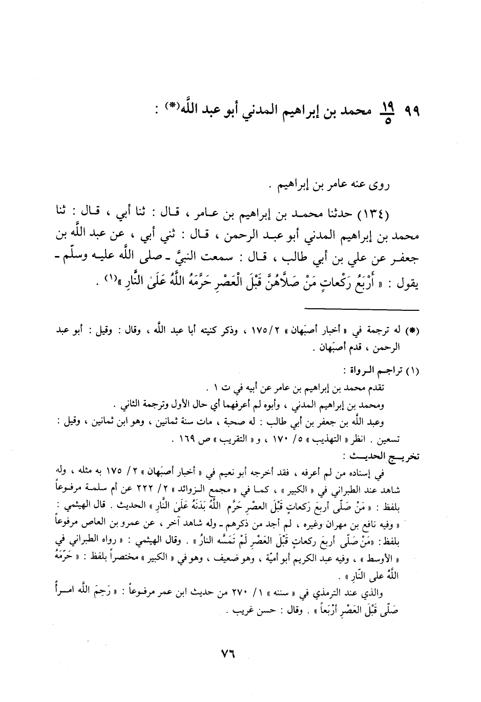 §99 - مُحَمَّدُ بْنُ إِبْرَاهِيمَ الْمَدَنِيُّ أَبُو عَبْدِ اللَّهِ رَوَى عَنْهُ عَامِرُ بْنُ إِبْرَاهِيمَ