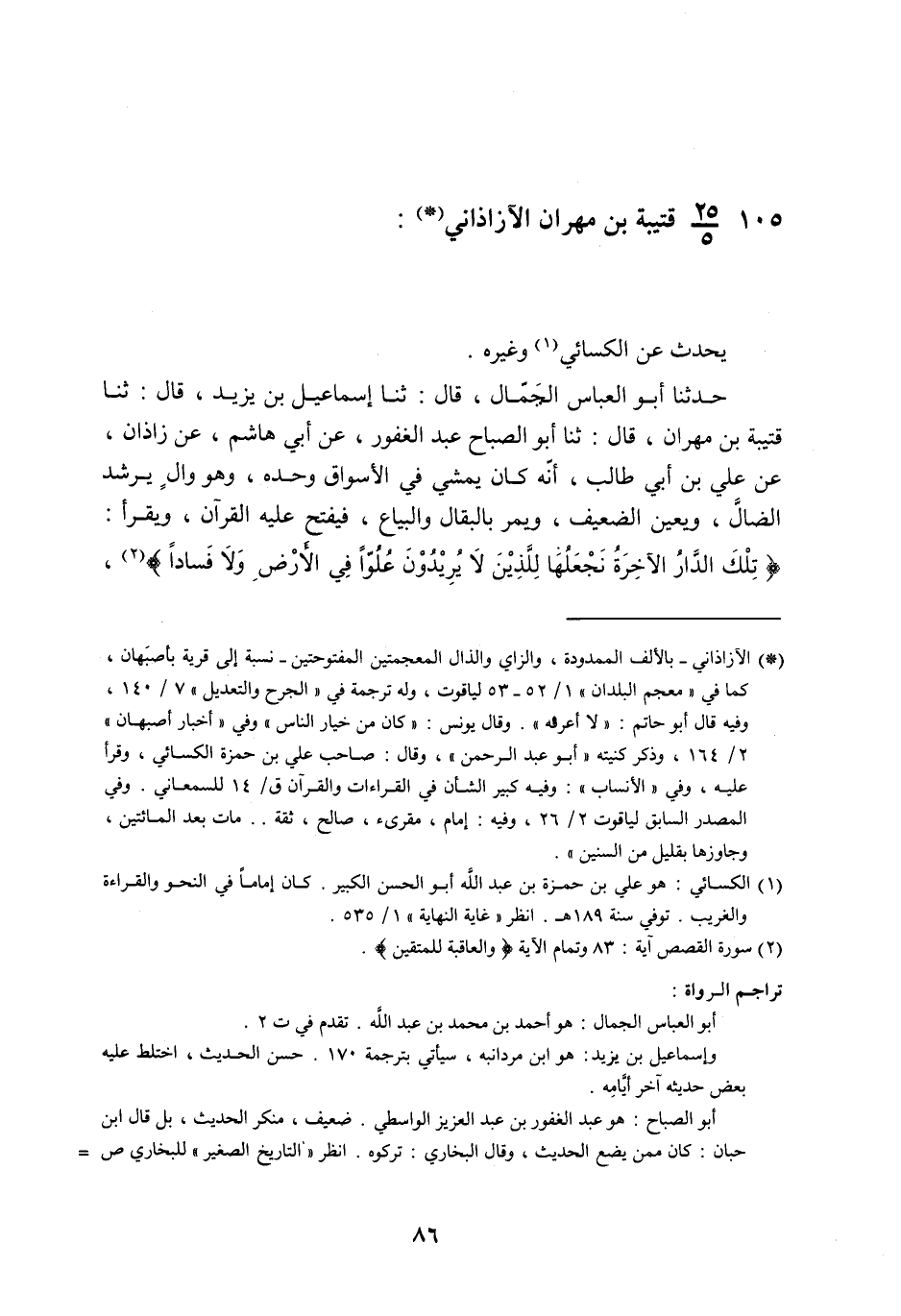 §105 - قُتَيْبَةُ بْنُ مِهْرَانَ الآزَاذَانِيُّ يُحَدِّثُ عَنْ الْكِسَائِيِّ , وَغَيْرِهِ