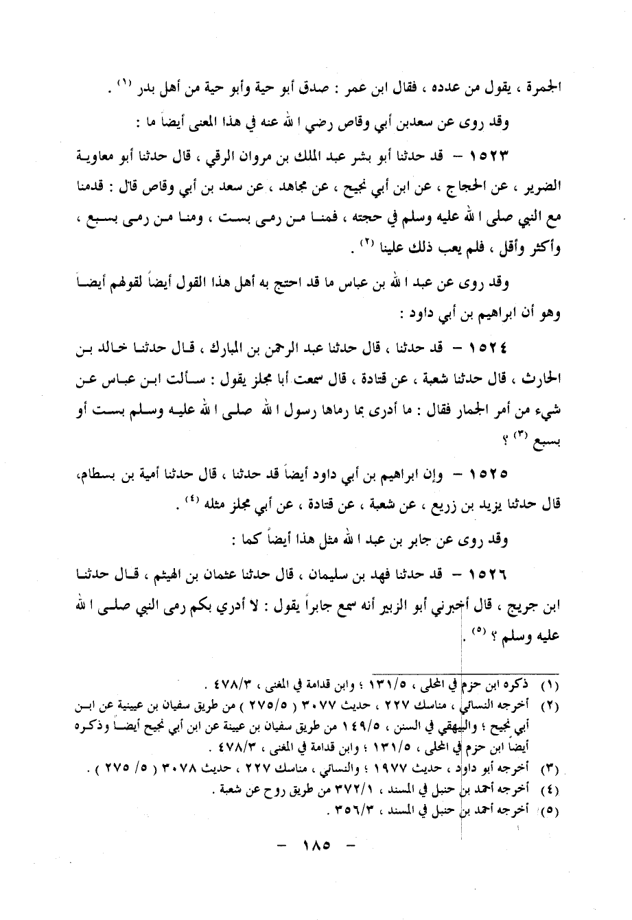 1524 - إِبْرَاهِيمُ بْنُ أَبِي دَاوُدَ قَدْ حَدَّثَنَا، قَالَ: حَدَّثَنَا عَبْدُ الرَّحْمَنِ بْنُ الْمُبَارَكِ، قَالَ: حَدَّثَنَا خَالِدُ بْنُ الْحَارِثِ، قَالَ: حَدَّثَنَا شُعْبَةُ، عَنْ قَتَادَةَ، قَالَ: سَمِعْتُ أَبَا مِجْلَزٍ، يَقُولُ: سَأَلْتُ ابْنَ عَبَّاسٍ عَنْ شَيْءٍ مِنْ أَمْرِ الْجِمَارِ، فَقَالَ: " مَا أَدْرِي، رُبَّمَا رَمَاهَا رَسُولُ اللهِ صَلَّى اللَّهُ عَلَيْهِ وَسَلَّمَ بِسِتٍّ أَوْ بِسَبْعٍ "،