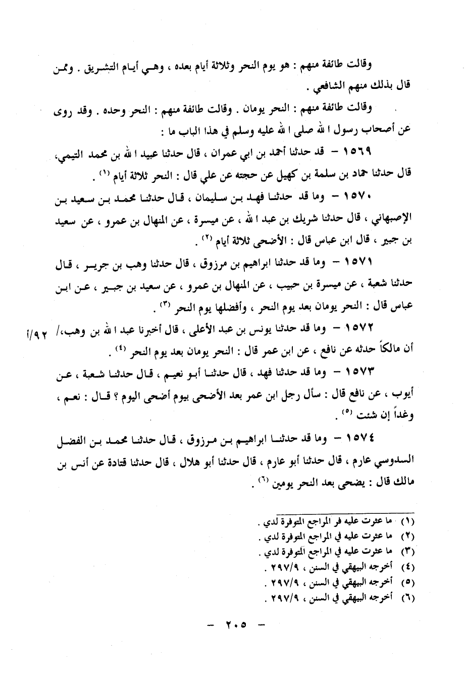 وَقَالَتْ طَائِفَةٌ مِنْهُمْ: هُوَ يَوْمُ النَّحْرِ وَثَلَاثَةُ أَيَّامٍ بَعْدَهُ، وَهِيَ أَيَّامُ التَّشْرِيقِ، وَمِمَّنْ قَالَ بِذَلِكَ مِنْهُمُ الشَّافِعِيُّ وَقَالَتْ طَائِفَةٌ مِنْهُمُ: النَّحْرُ يَوْمَانِ وَقَالَتْ طَائِفَةٌ مِنْهُمُ: النَّحْرُ وَحْدَهُ وَقَدْ رُوِيَ عَنْ أَصْحَابِ رَسُولِ اللهِ صَلَّى اللَّهُ عَلَيْهِ وَسَلَّمَ فِي هَذَا الْبَابِ مَا